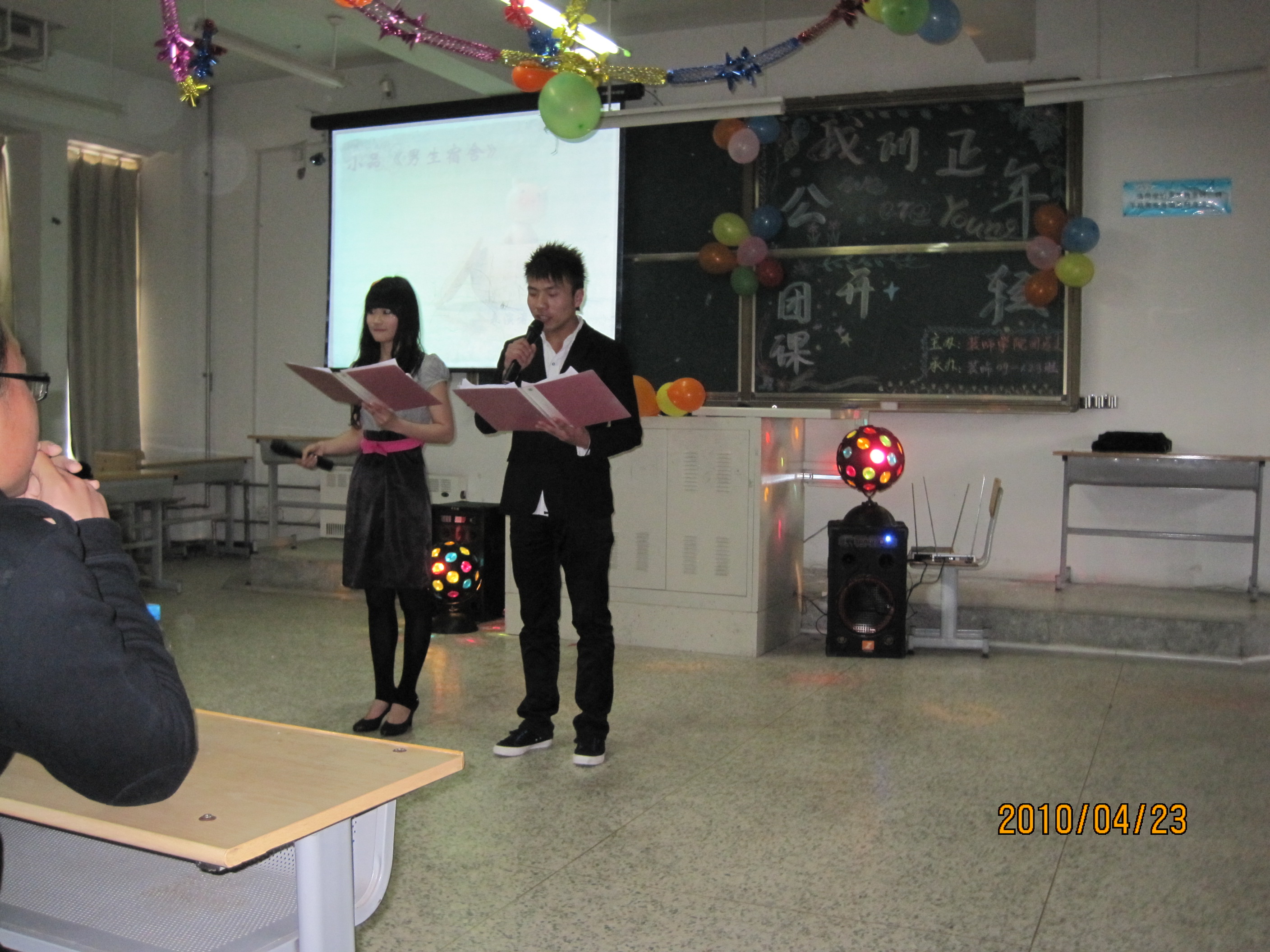 2010年4月23日16:30,由徐州建筑职业技术公司,建筑装饰艺术公司团总支主办,装饰09-1.2.3班承办的以“我们正年轻”为主题的公开团课在教三D-403如期举行。