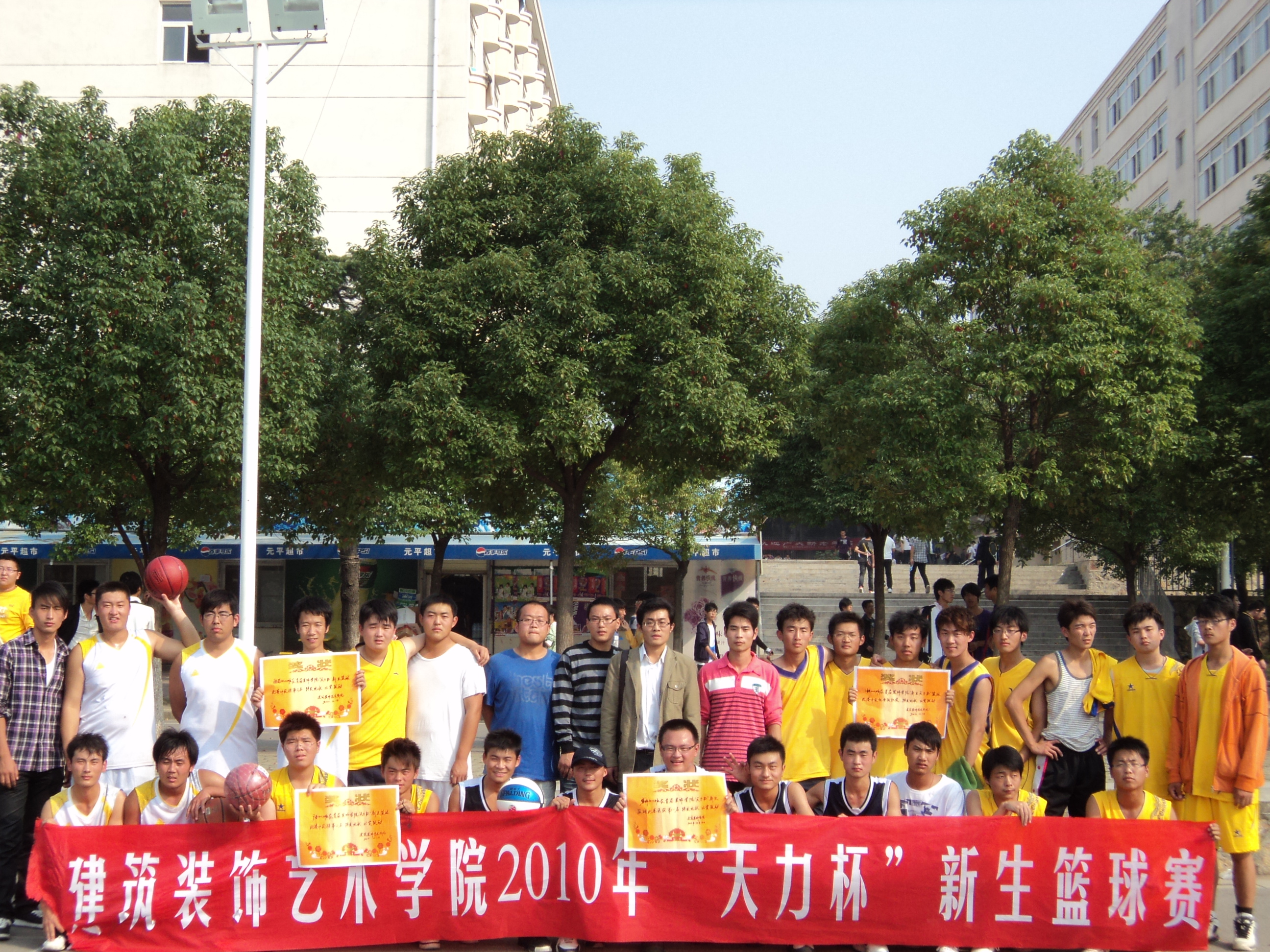 为了增进2010级新生班级间的友谊,丰富校园课余生活,提高新生参加篮球比赛的热情和参与体育锻炼的积极性,继续弘扬公司员工体育道德风尚,加强公司员工的竞争意识和进取精神,在公司领导、老师及徐州天力装饰公司的关心和大力支持下,公司于201010818日在西校区篮球场组织了一场别开生面的篮球赛。