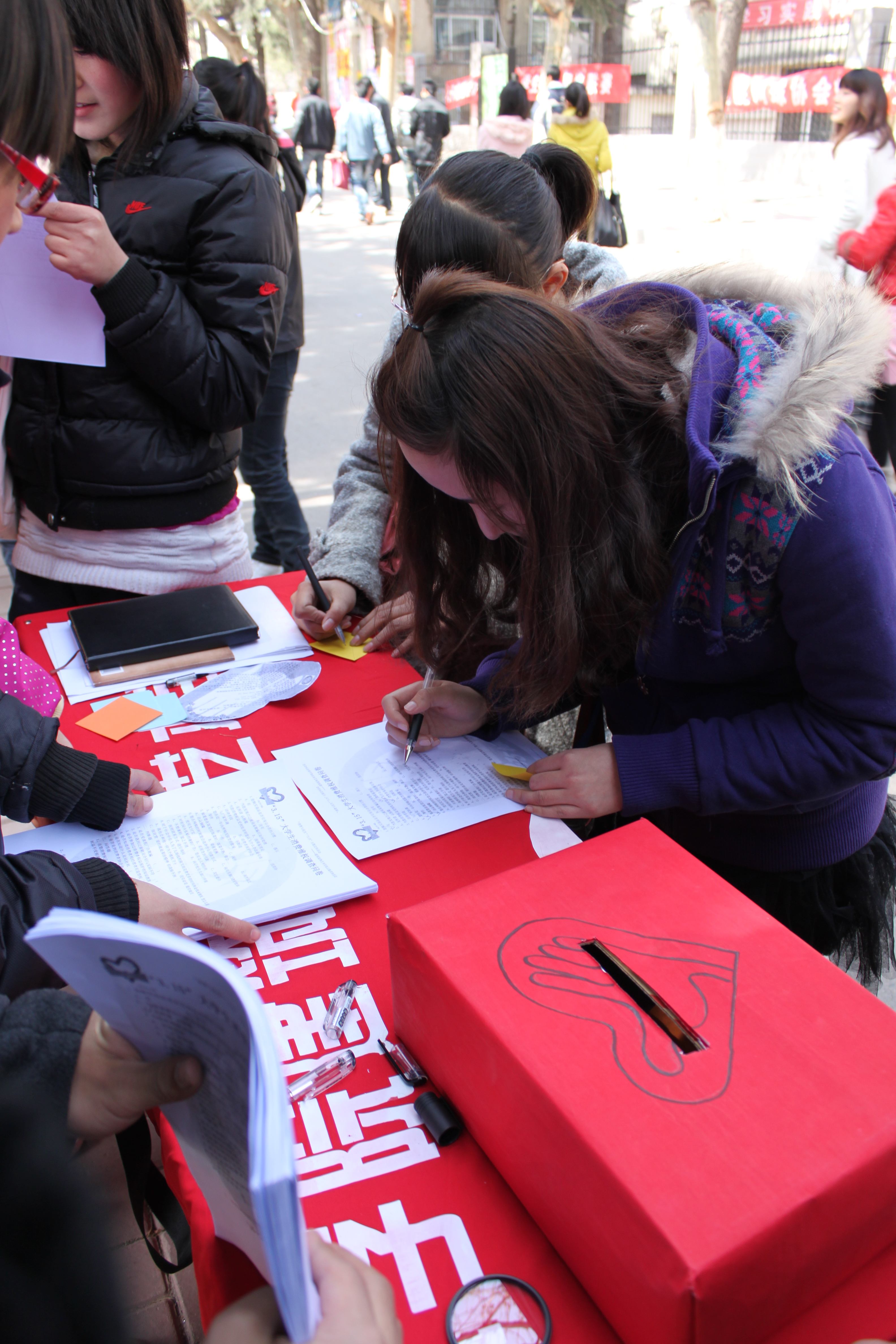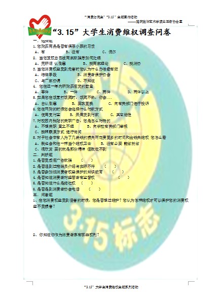 活动现场,太阳成集团tyc522cc青志协在通过发放“消费维权爱心卡片”的形式对消费维权知识进行宣传,卡片内容涉及消费者权益、消费者维权热线、消费者维权网站、校园消费维权站点等维权知识;同时,太阳成集团tyc522cc青志协还认真设计了“