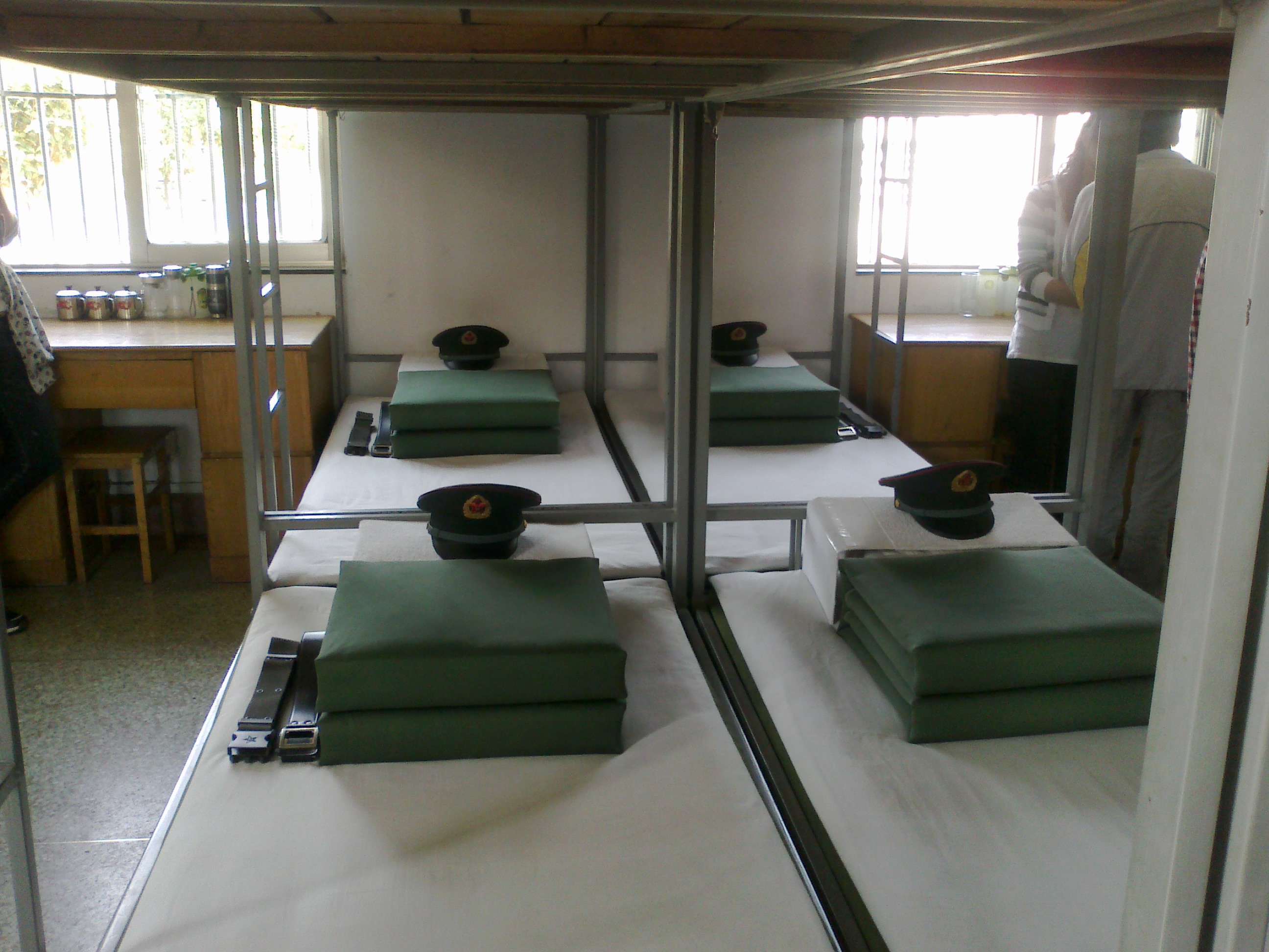 官兵宿舍的内务整齐划一,整洁万分,让同学们叹服不已;官兵现场为同学们进行了内务演示,也给同学们上了很好的一课;书橱上“创建学习型军营,争做知识型军人”的标语,增进了同学们学习的动力。武器装备库内,讲说员讲述了我国国防武器装备,极大地增加了大家对国防的热爱之情。在营地训练场上,同学们也是好身手,亲身参与素质拓展训练,体验的不亦说乎。整个活动,每个同学都包含激情,深刻体味军营生活的苦与乐。