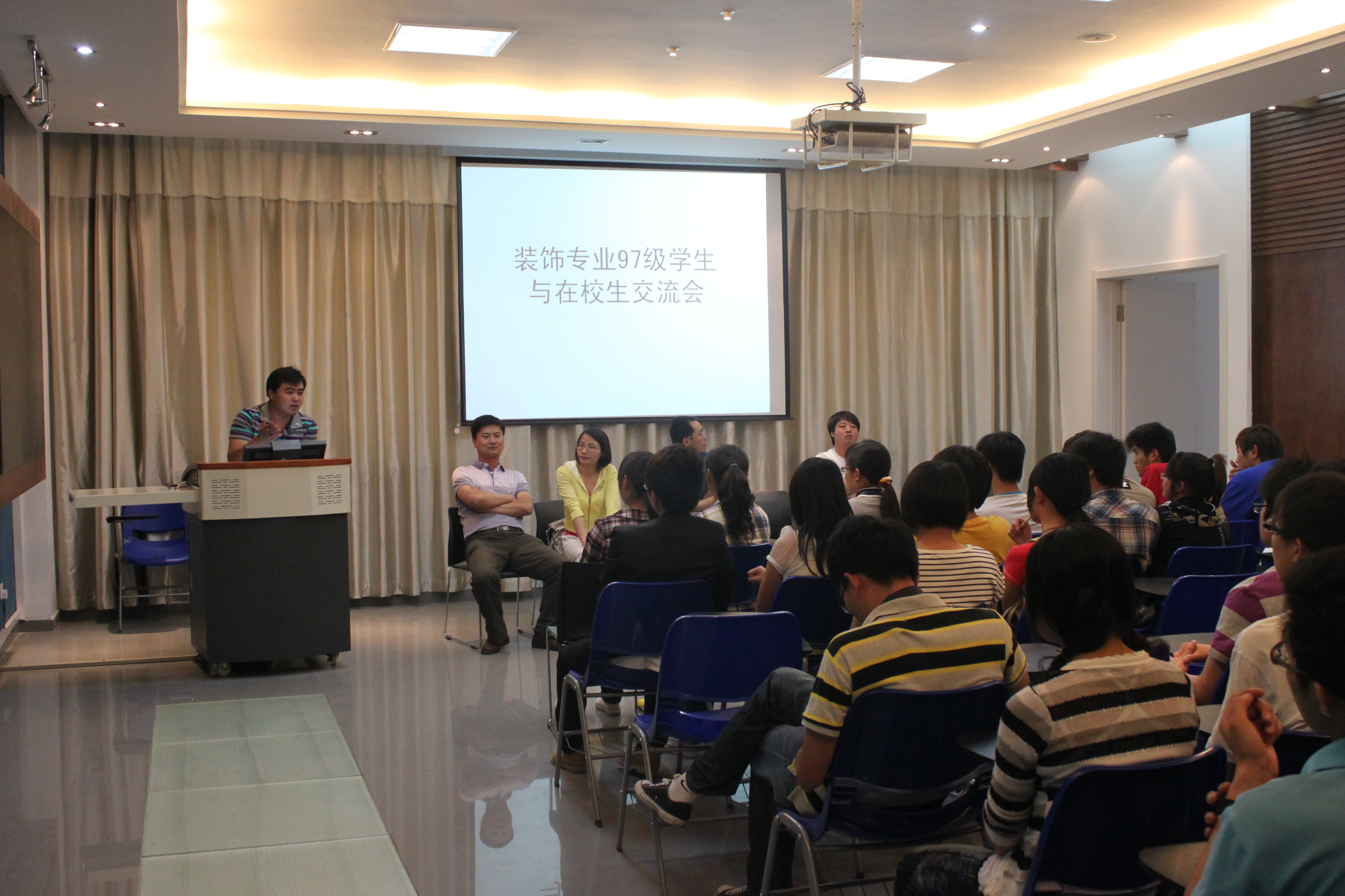 座谈会后,员工们在副经理江向东的介绍下,集体参观了建筑技术馆。下午3:00,黄荣、康华等6名杰出员工与学弟学妹们进行了深入的交流。