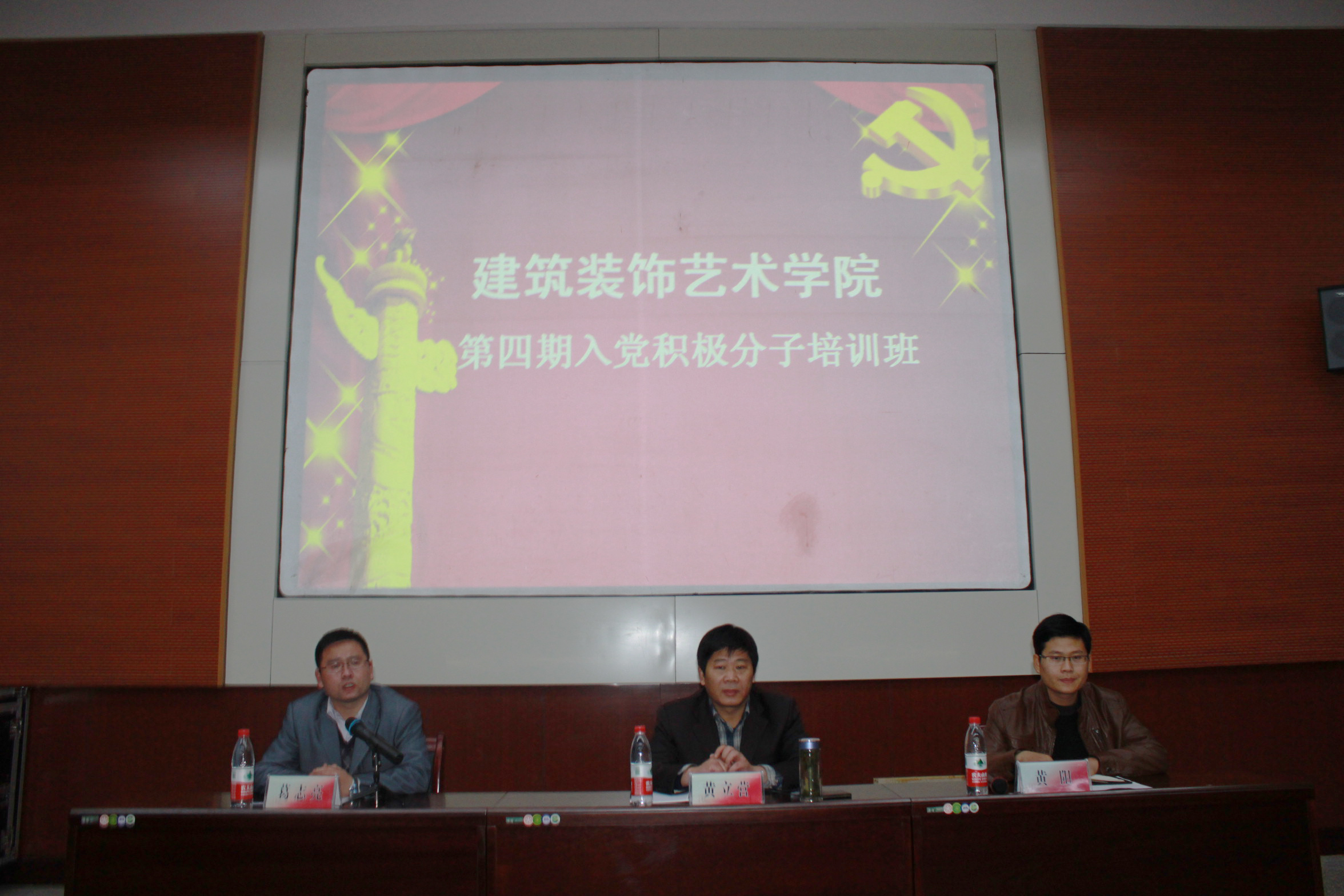 1024日晚上19:30,建筑装饰艺术公司第四期入党积极分子培训班在多厅二隆重举行。公司党总支书记、分党校董事长黄立营,党总支副书记、分党校副董事长葛志亮,分团委书记黄阳以及77名入党积极分子参加了开班典礼。开班典礼由葛志亮副书记主持。