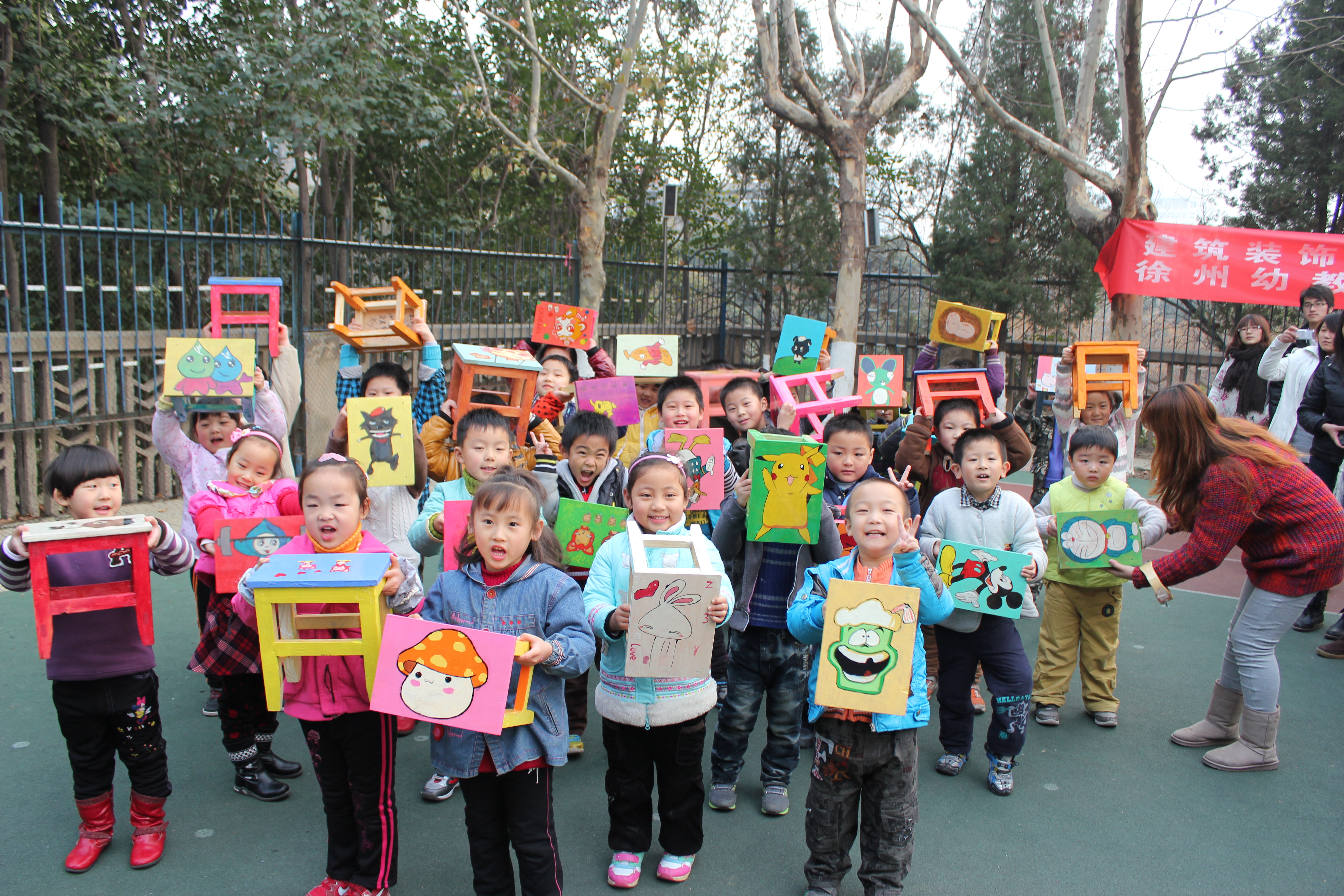 据悉,在太阳成集团tyc522cc员工工作办公室的策划下,老员工装饰协会的社员们结合自己的所学专业课程,充分利用在建筑装饰实训室进行专业技能实训的有利条件,积极参与到为建院幼儿园的小朋友们手工制作“爱心小板凳”的行列中。同时,各社团成员还利用自己的美术专业特长,在牢固安全、美观实用的小板凳上精心绘制小朋友们特别喜爱的各类各式动画,深受建院小朋友们的喜爱。