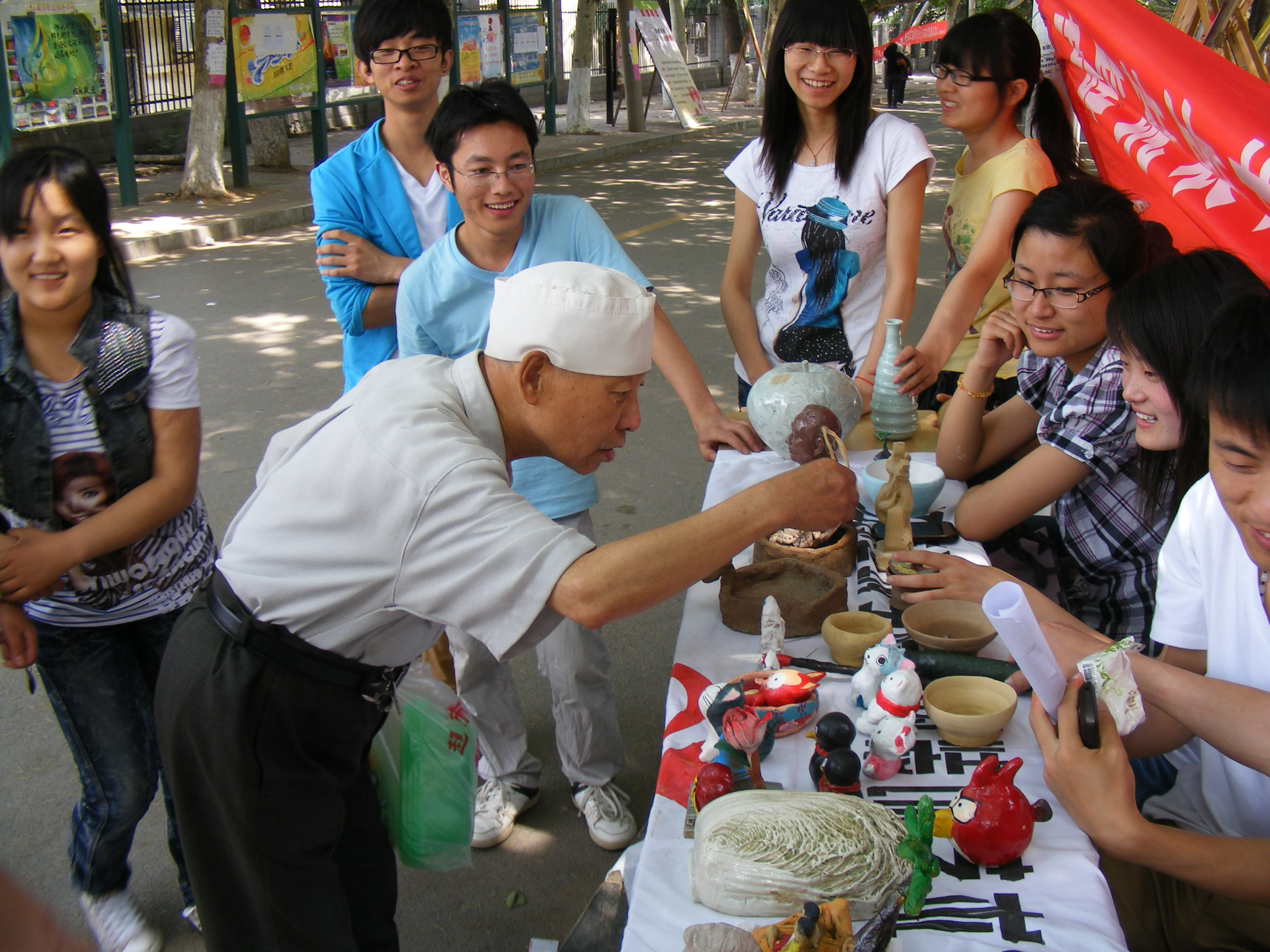 2012年5月11日,建筑装饰艺术公司老员工陶艺协会在林荫大道举行了以“激情五月,陶出精彩”为主题的陶艺作品展演。此次活动共分为两个部分,中午在林荫大道进行了陶艺展示,大家展示了陶艺作品,陶艺社成员精心制作的一个个栩栩如生的卡通形象陶艺作品让路人惊叹不已。,陶艺协会于陶艺工作室开展陶艺制作讲座和陶艺DIY活动。