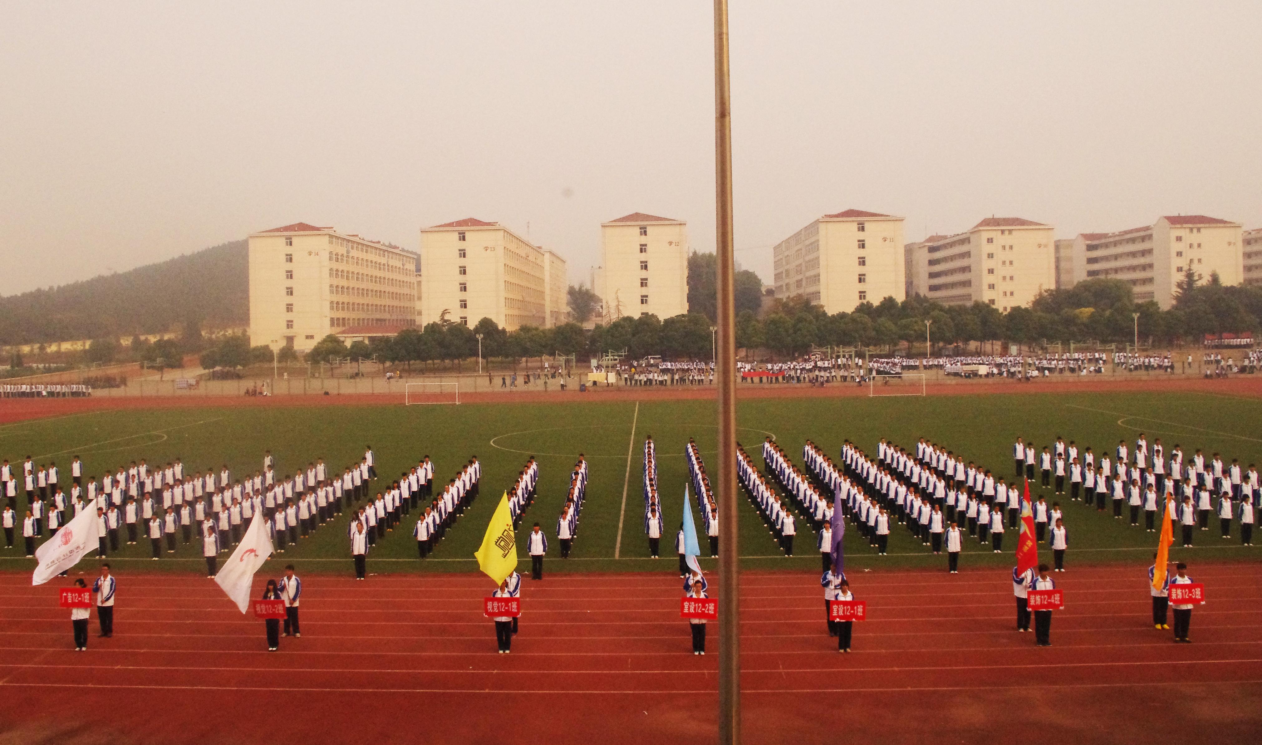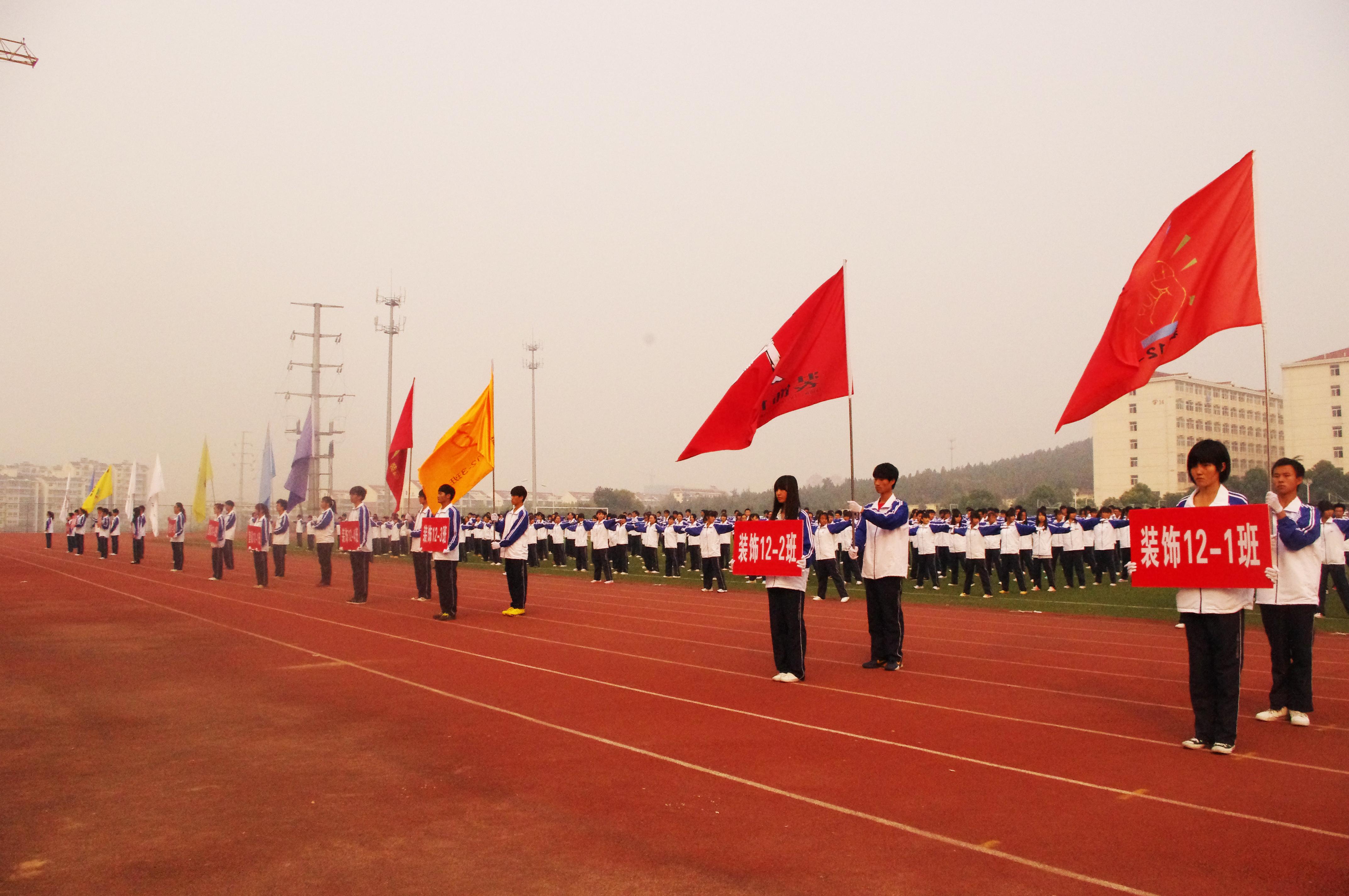 在比赛中,各参赛班级都精心准备了鲜艳的班旗,凝练了激昂的口号,“创先争优、勇于拼搏”、“脚踏实地练技能、欢喜鼓舞铸明天 ”,口号响彻全场,震撼人心。在接下来的广播操比赛中,各班级同学穿上整齐的军训服,伴随着第九套广播操音乐,配合高度默契,动作整齐划一,成为比赛场上一道亮丽的风景。