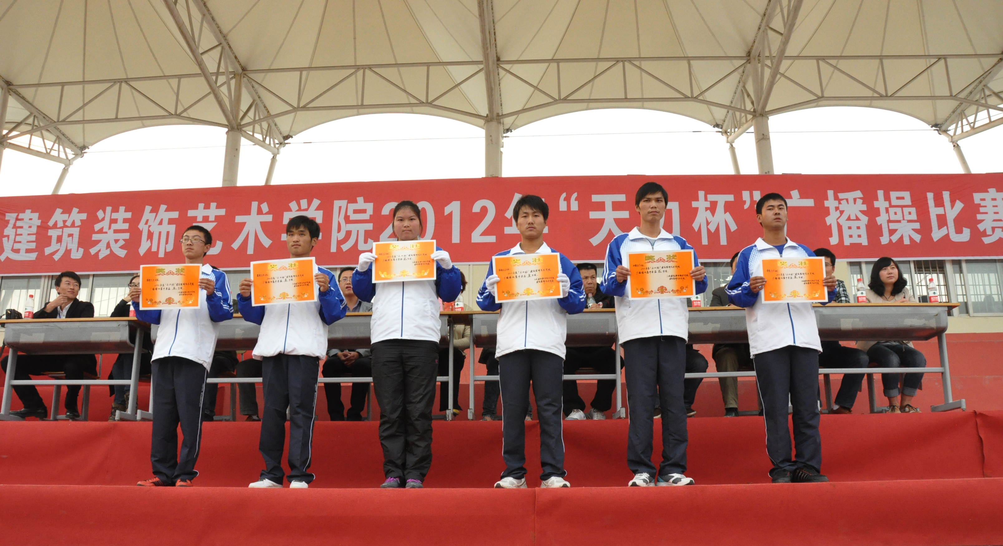 为了迎接党的十八大胜利召开提高员工参加体育锻炼的积极性,培养老员工良好的行为习惯,展示老员工的良好精神风貌,迎接校运动会的召开1020日,建筑装饰艺术公司在新校区西田径场举行了2012年“天力杯”广播操比赛,全院12个新生班级400余名员工组队参加了激烈角逐。