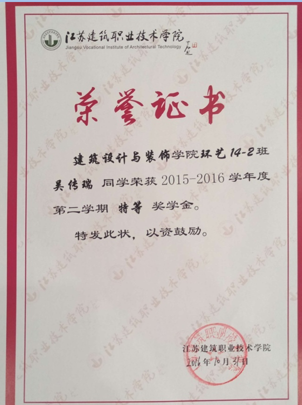 在学习上我矢志于做一个勤奋学习的人,在专业上我专心于做一个不断创新的勇闯者。在2016年10月,我作为两个创新团队的负责人,带队参加了全国第十一届高职高专“发明杯”大赛。近五个月的赛前准备期,正是我们专业的校外实训期,在这期间我在一家大型装饰公司实习,借此机会我对比传统的石材加工施工工艺,白天在施工现场冒着高温学习专业技能,晚上总结参赛项目如何在实际工程中更好的应用,将理论与实践良好的结合。回到公司已经是九月份,离比赛开始还有不到一个月的时间,团队夜以继日的加班加点,以“节能环保,安全高效”为出发点,反复的修改优化作品,从一代到二代到最终的第三代作品。比赛当天,所有到场的专家评委和企业嘉宾都对我们的作品给予了高度的评价,不负众望我们的饰面砖倒角台项目获得了发明类一等奖、另一个团队的作品也获得了创意类三等奖。全国发明杯的一等奖坚定了我对未来的信心,也坚信未来社会“不唯学历,唯能力,上高职,一样能成才”。三年的经历,对我而言不仅有物质上的所得,更多的是我对于生命的一种态度,既然存在,就应该找到自己存的意义,因为生活不只有眼前的苟且,更有诗和远方。