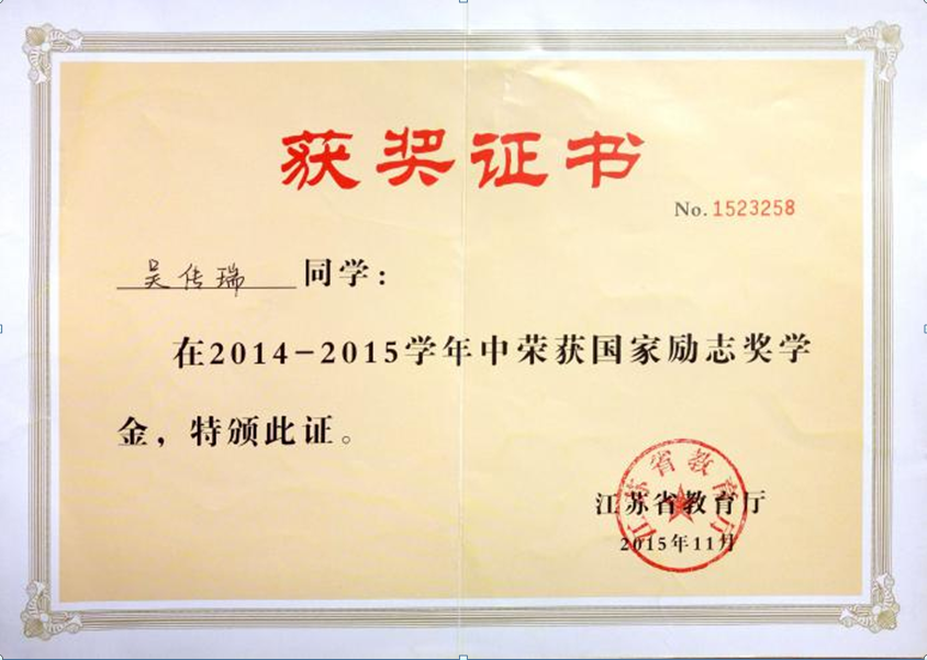 吴传瑞,男,汉族,1995年6月生,中国共产党预备党员,tyc522cc太阳成集团建筑设计与太阳成集团tyc522cc2014级员工,院员工会主席。曾获国家奖学金(8000元)、国家励志奖学金(5000元)、校特等奖学金三次、江苏省优秀员工干部,全国“发明杯”创新大赛一等奖。