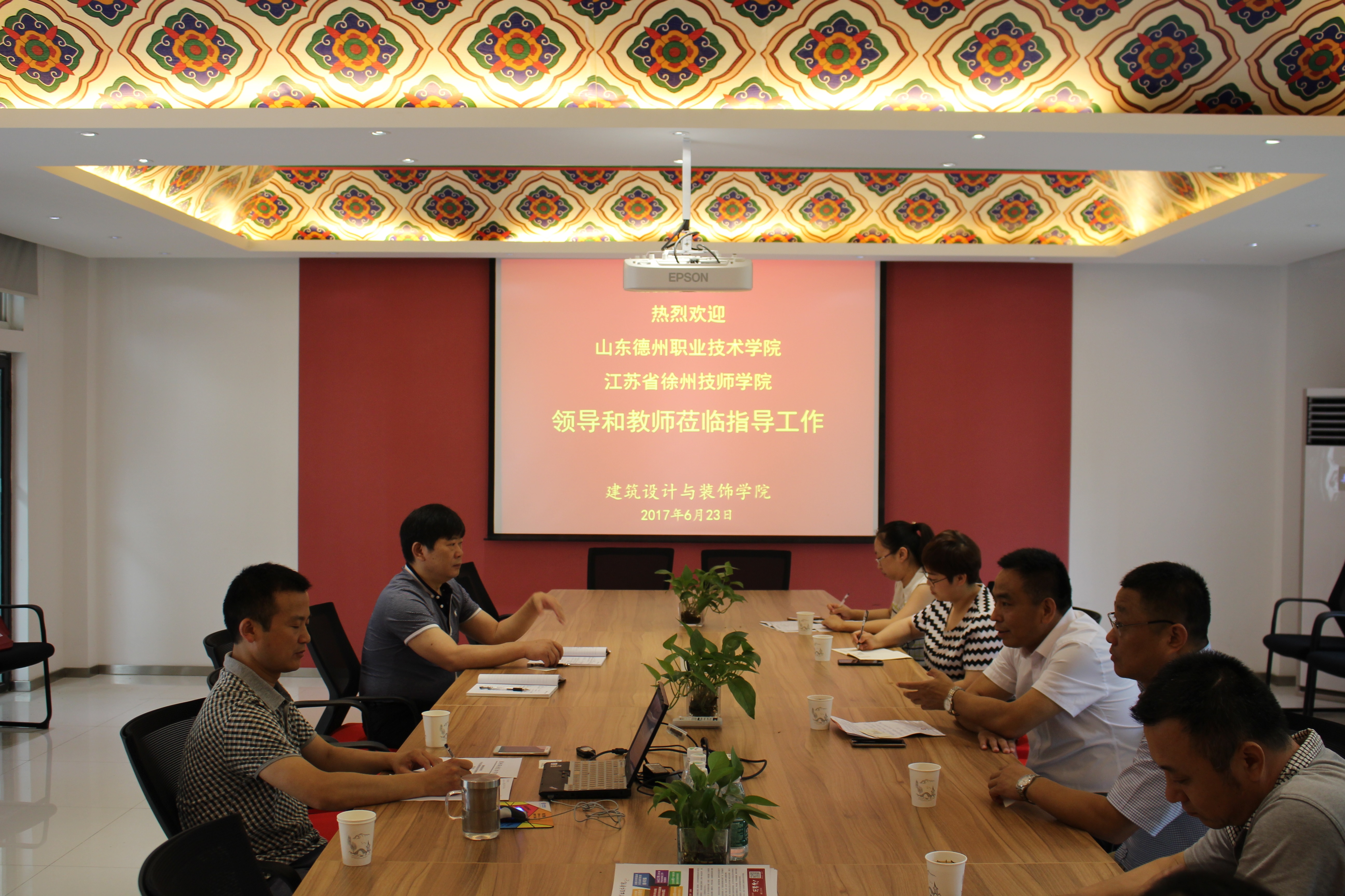 6月23日,德州职业技术公司建筑园林工程系主任王刚和徐州技师公司建筑工程系主任安德锋一行来公司考察交流,设计公司党总支书记黄立营、经理陈志东、室内艺术设计专业翟胜增老师热情接待了客人,并在公司会议室举行了座谈。
