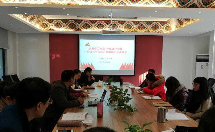 11月28日,为进一步深入学习宣传贯彻党的十九大精神,按公司党总支工作布置,公司王子夺副经理在公司会议室做了题为《认真学习党章 严格遵守党章—学习《中国共产党章程》心得体会》的讲座,我公司党总支书记黄立营主持会议,全体教工党员参加会议。公司理论学习中心组前期进行了专项学习。