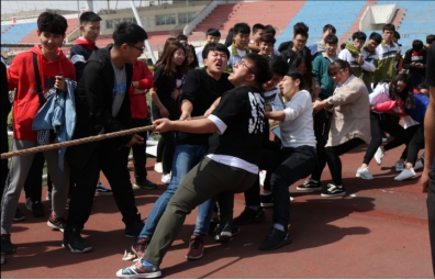 首先开展的是个人赛“摸石过河、袋鼠跳”;紧接着是宿舍比赛“踩气球、三人四足”以及班级团体赛“拔河、跳绳比赛”。为了能给自己宿舍、班级争得荣誉,大家积极参与。运动会精彩纷呈,不仅增进了各班同学之间的友谊,而且也增强了同学之间的团队协作能力。