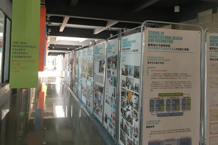 设计公司2018届专业人才培养汇报展是三年人才培养学习过程成果与毕业作品成果一次综合成果汇报,共有建筑装饰工程技术、室内艺术设计、环境艺术设计、建筑设计、园林工程技术、古建筑工程技术、城乡规划等7个专业518名毕业生参展。