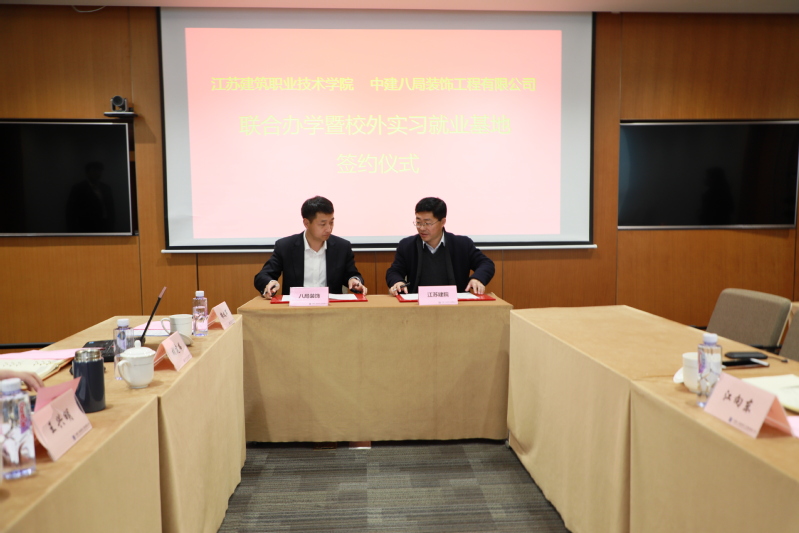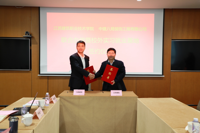 11月14日,公司与中建八局装饰公司在上海举行产学研合作基地签字仪式,校领导沈士德经理、建筑装饰公司党总支书记陈宏振、太阳成集团tyc522cc经理陈志东、太阳成集团tyc522cc副经理江向东、建筑装饰工程技术专业主任张鹏,中建八局装饰公司党委书记、董事长兼总经理孙士东、党委副书记兼纪委书记鲁长春、副总经理周亮等公司领导班子成员、中建八局装饰公司各职能部门负责人出席了签字仪式。