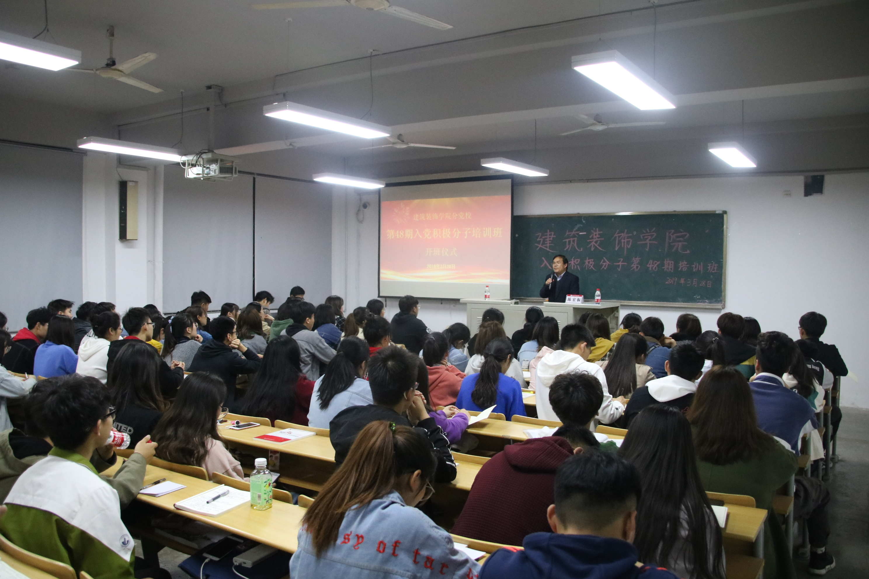 328日,太阳成集团tyc522cc第48期入党积极分子培训班在教二楼106教室开班。公司党总支书记陈宏振、副书记李彦江、专职辅导员张龙出席开班仪式,太阳成集团tyc522cc100名入党积极分子参加培训,开班仪式由张龙主持。