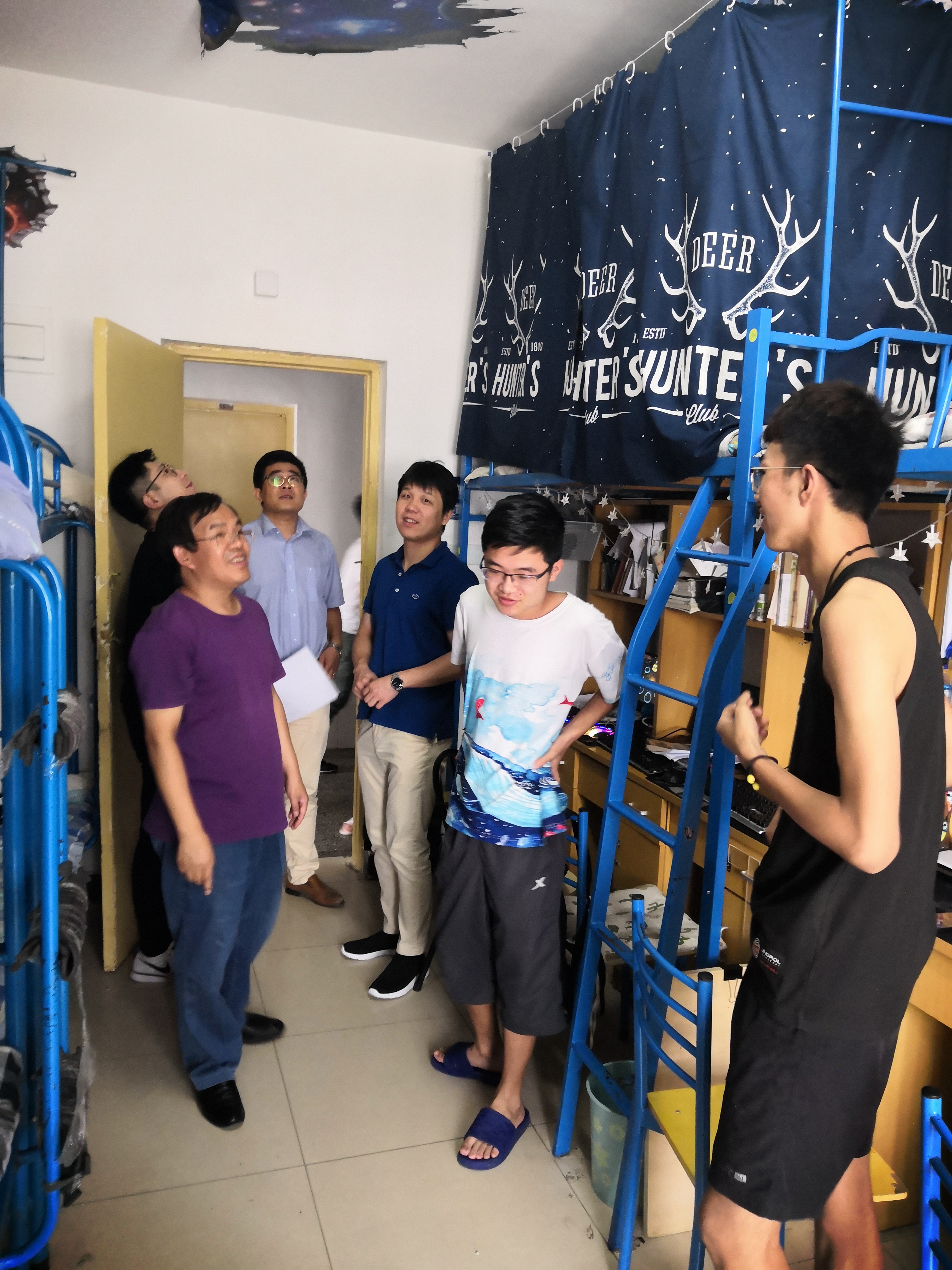 7月9日下午,公司党总支书记陈宏振、副书记李彦江带领专兼职辅导员走访员工宿舍,深入了解员工思想、学习、生活、安全、卫生等情况,推进宿舍文明建设。