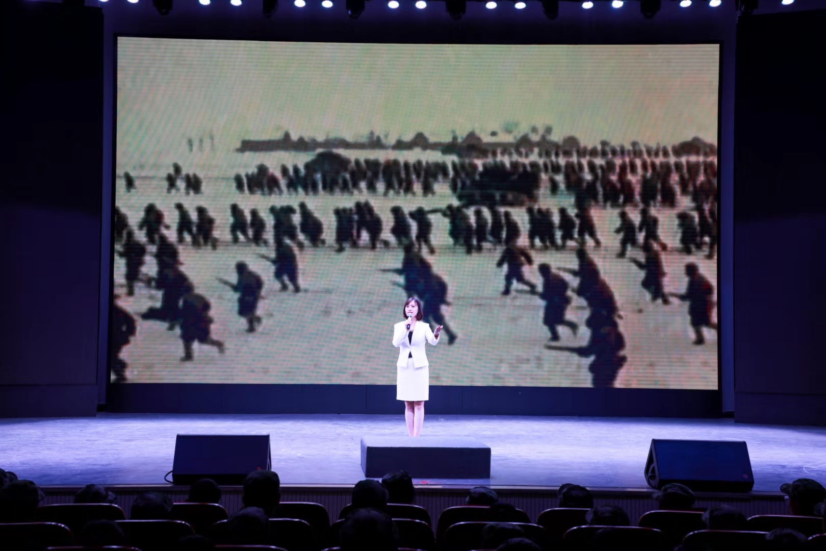 790余名新生在会堂一起观看了爱国纪录片《厉害了,我的国》,聆听全国优秀教育工作者、全国红色故事金牌讲解员李楠老师和胡鑫同学讲述的《人民的胜利》《太行奶娘》的革命故事。