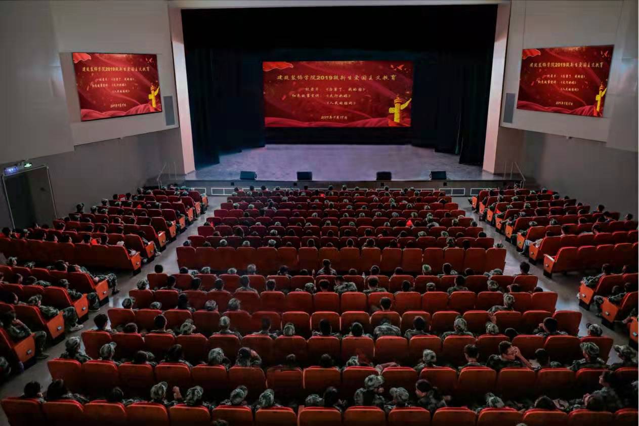 790余名新生在会堂一起观看了爱国纪录片《厉害了,我的国》,聆听全国优秀教育工作者、全国红色故事金牌讲解员李楠老师和胡鑫同学讲述的《人民的胜利》和《太行奶娘》的革命故事。