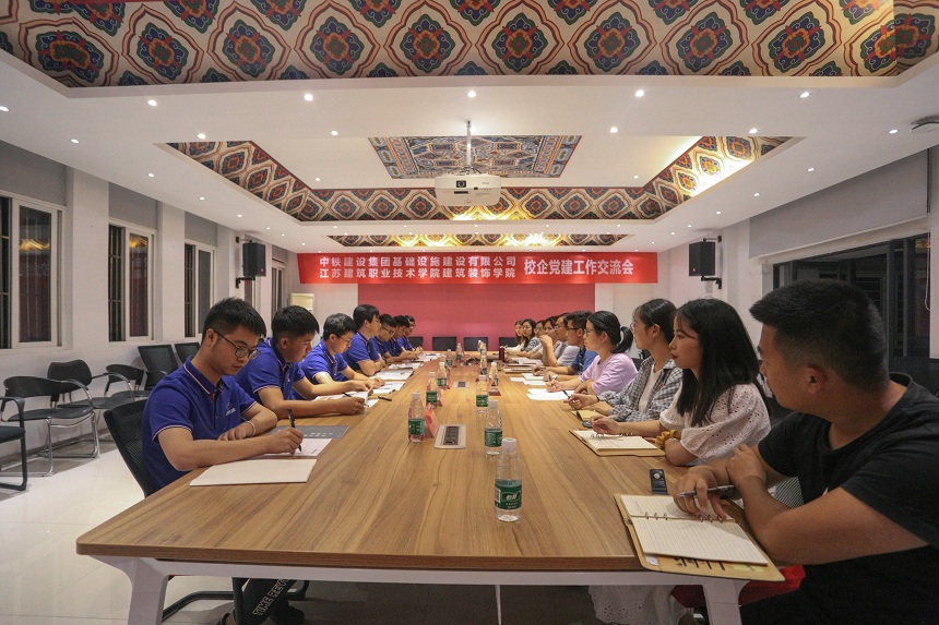 为深入贯彻习近平新时代中国特色社会主义思想,不断推进基层党建工作创新,拓展深化校企交流合作,9月10日晚,中铁建设集团基础设施建设有限公司技术质量部经理牛卫兵一行7名党员来公司交流党建工作。公司党总支书记陈宏振、副书记李彦江进行了热情接待,团委书记周燕、辅导员张志荣以及部分员工党员参加了交流会。