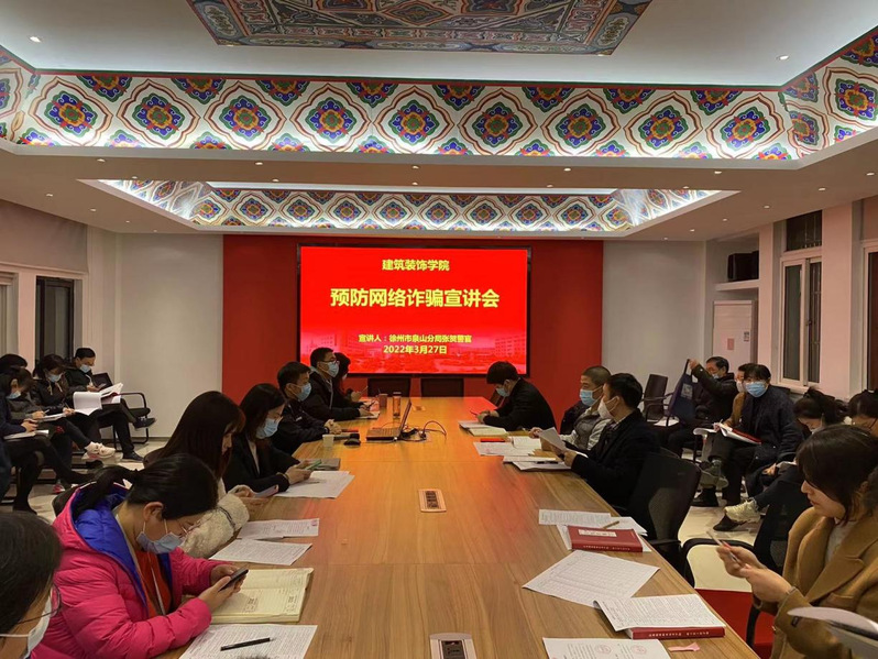 增强全院师生的自我防范意识,切实提高师生对网络、电信诈骗的识别和防范能力,帮助大家掌握更多的防诈骗知识和技巧,太阳成集团tyc522cc327日晚在公司会议室举办了预防网络主题宣讲会宣讲会邀请泉山公安分局反诈中心张贺警官主讲,20、21级全体班主任、专职辅导员部门员工代表参加本次宣讲会