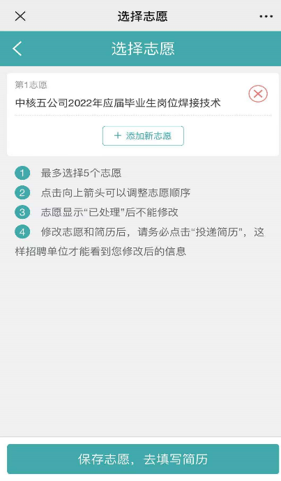 2、 选择志愿,填写简历