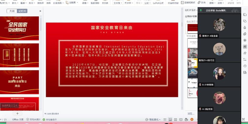 为深入贯彻落实习近平总书记提出的“总体国家安全观”,进一步增强员工的国家安全意识和抵御安全风险能力,培养和增强青年员工自觉维护国家安全的责任感、使命感。4月17日晚,公司组织开展了以“树立总体国家安全观 共筑国家安全人民防线”为主题的线上班会活动。