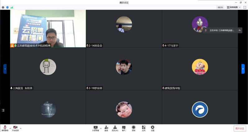 校企双方在线交流当前行业企业对建筑类专业的技能需求,tyc522cc太阳成集团毕业生在企业的综合表现以及需要提升改进的方面,校企双方深入探讨企深度合作,人才订单培养事宜,并约定疫情之后开展互访、洽谈合作。企业负责人在线介绍企业、开展招聘宣讲和现场答疑。此次上海银龙装饰提供30个工作岗位,共有35名员工参加线上招聘会,多位毕业生通过本次招聘活动与企业达成了就业意向。