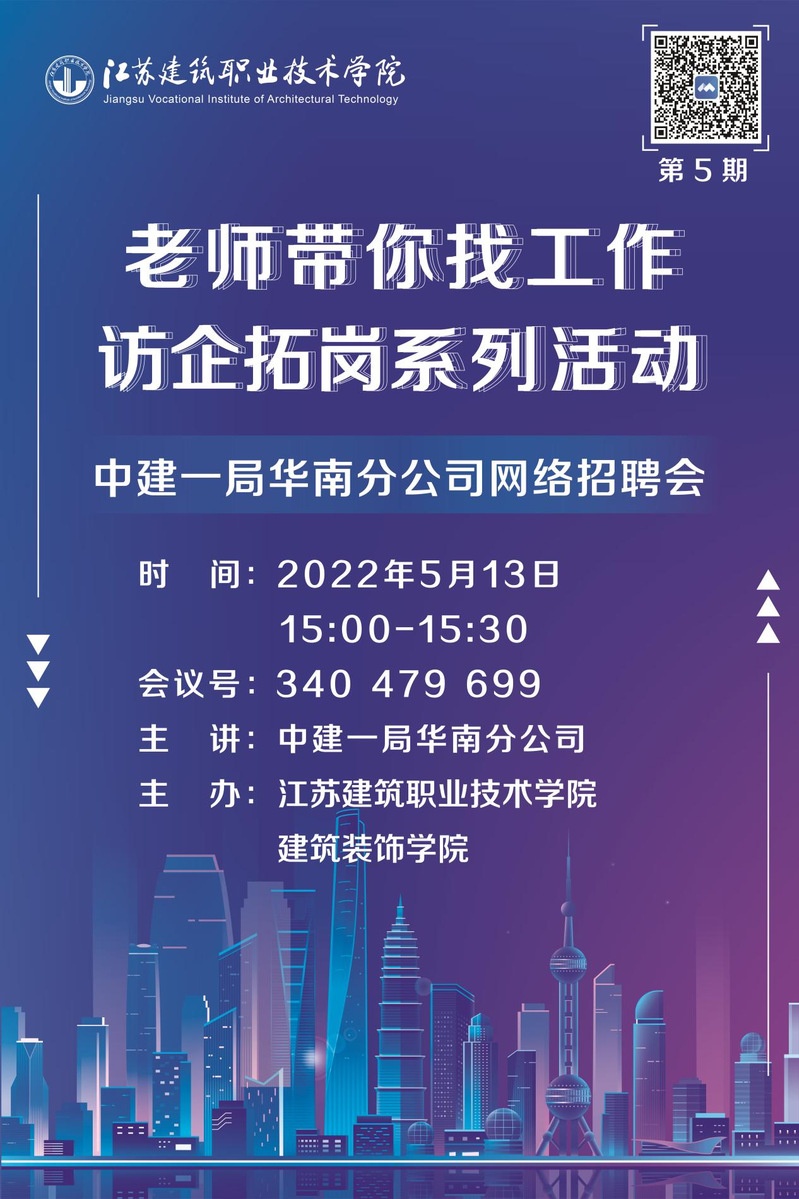 5月13日15:00tyc522cc太阳成集团太阳成集团tyc522cc开展了第五期“老师带你找工作”即访企拓岗线上招聘活动,此次招聘的企业是中建一局华南分公司。tyc522cc太阳成集团经理沈士德教授,装饰公司党总支书记娄志刚、就业辅导员胡晓爽参加了此次招聘会。