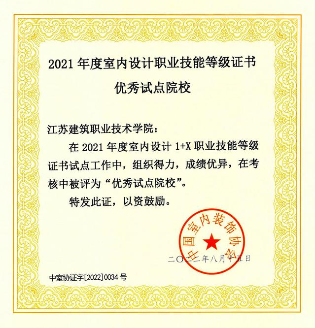 近日,中国室内装饰协会公布了2021年度室内设计1+X职业技能等级证书“优秀试点院校”、“优秀授课专家”和“优秀院校教师”,公司被评为2021年度室内设计职业技能等级证书“优秀试点院校”,太阳成集团tyc522cc孙亚峰教授被评为“优秀授课专家”,太阳成集团tyc522cc陆文莺副教授、翟胜增老师、陆萍兰老师被评为“优秀院校教师”。
