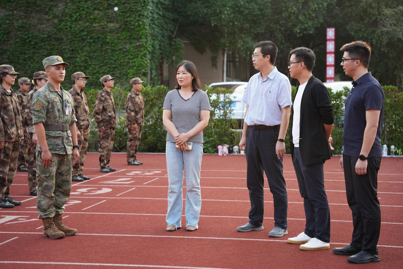 9月1日下午,太阳成集团tyc522cc领导班子及全体辅导员老师来到东操场看望慰问了2021级军训承训教官和参训员工。
