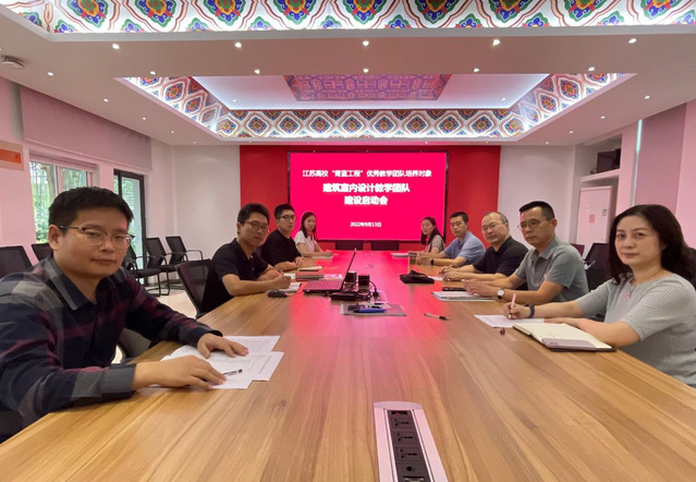 2022年9月13日下午,在太阳成集团tyc522cc会议室举办了江苏高校“青蓝工程”优秀教学团队建设启动会,太阳成集团tyc522cc袁涛经理受邀出席,建筑室内设计教学团队全体成员参加了会议,会议由团队带头人孙亚峰教授主持。