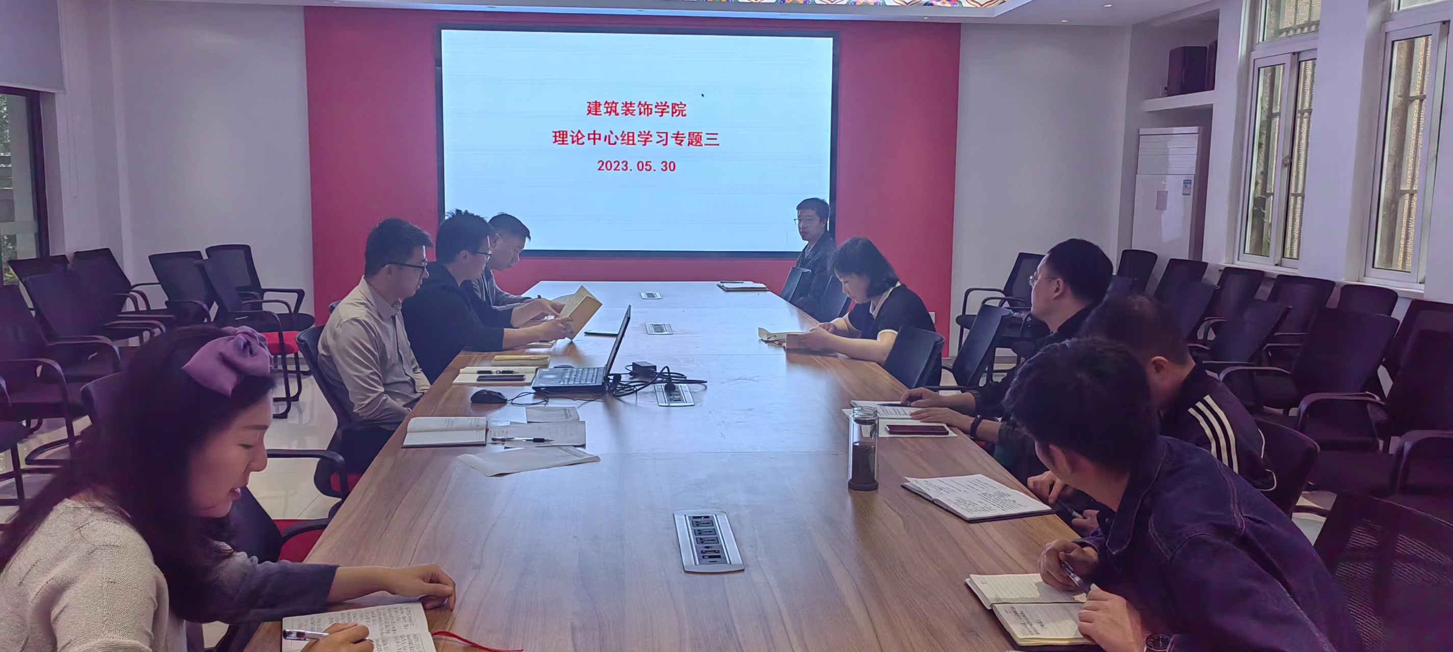 5月30日上午,建筑装饰公司党总支理论学习中心组在公司会议室开展学习贯彻习近平新时代中国特色社会主义思想主题教育读书班暨理论中心组第三次集中学习,专题学习《习近平新时代中国特色社会主义思想学习纲要》。党总支书记娄志刚主持会议,公司理论学习中心组全体成员参加学习。