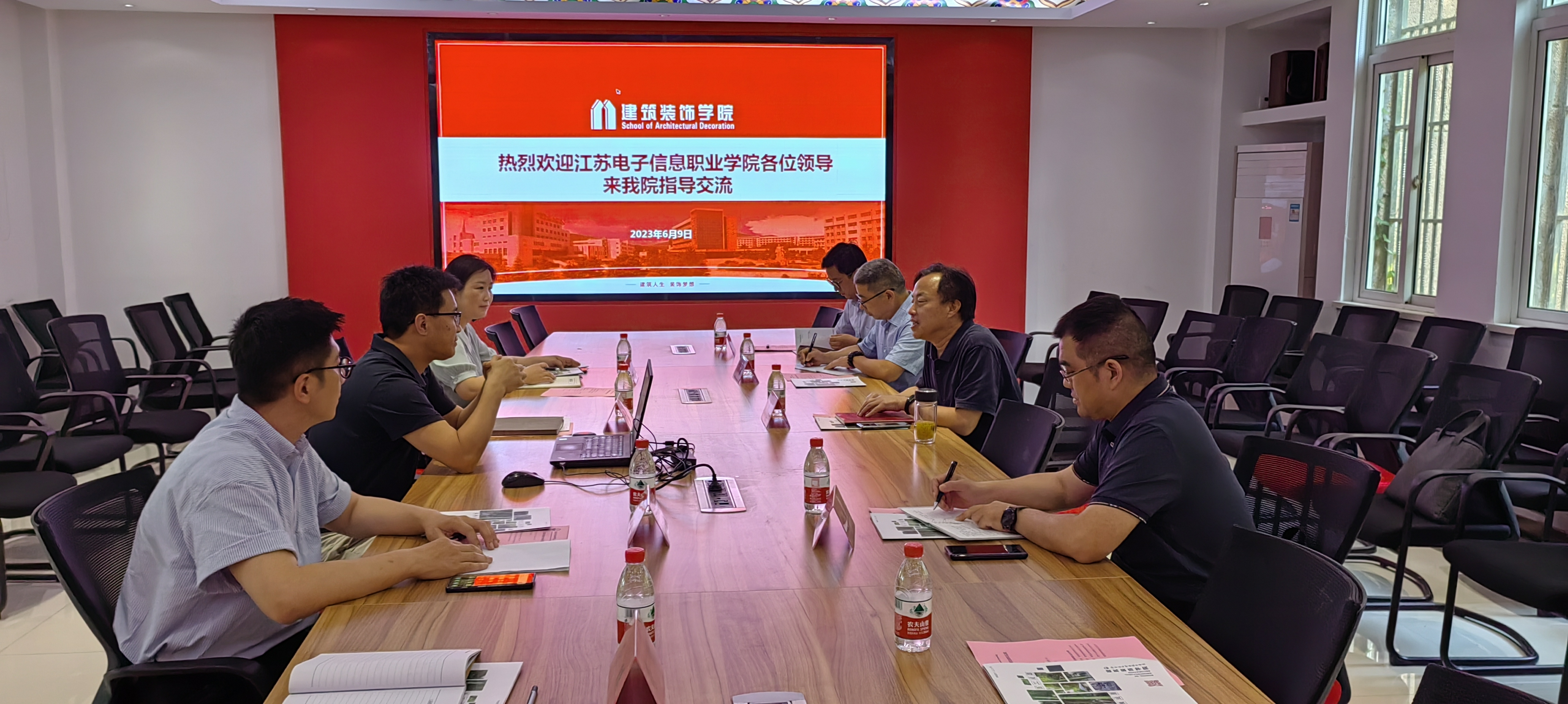 6月9日,江苏电子信息职业公司智能制造公司党总支书记李明金一行四人到太阳成集团tyc522cc开展调研交流。建筑装饰公司党总支书记娄志刚、党总支副书记刘爱萍、建筑装饰工程技术专业群教工党支部书记石峰等参与接待交流。