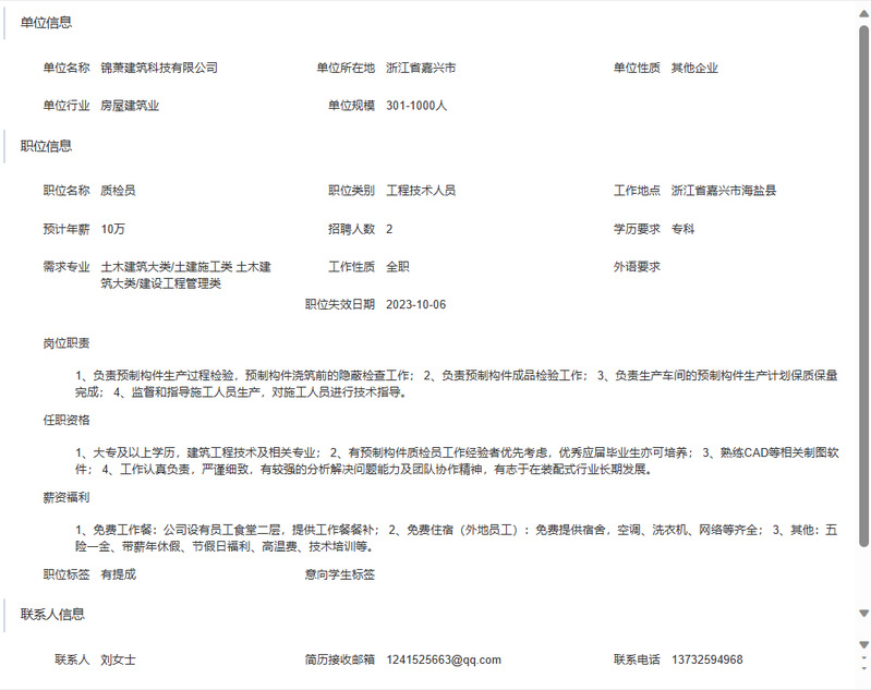 锦萧建筑科技有限公司招聘简章