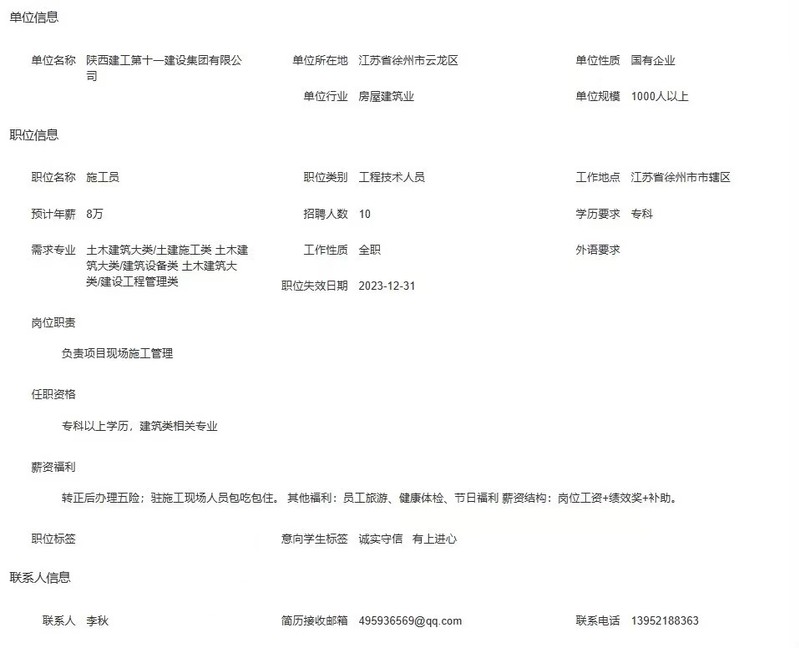 陕西建工第十一建设集团有限公司招聘简章