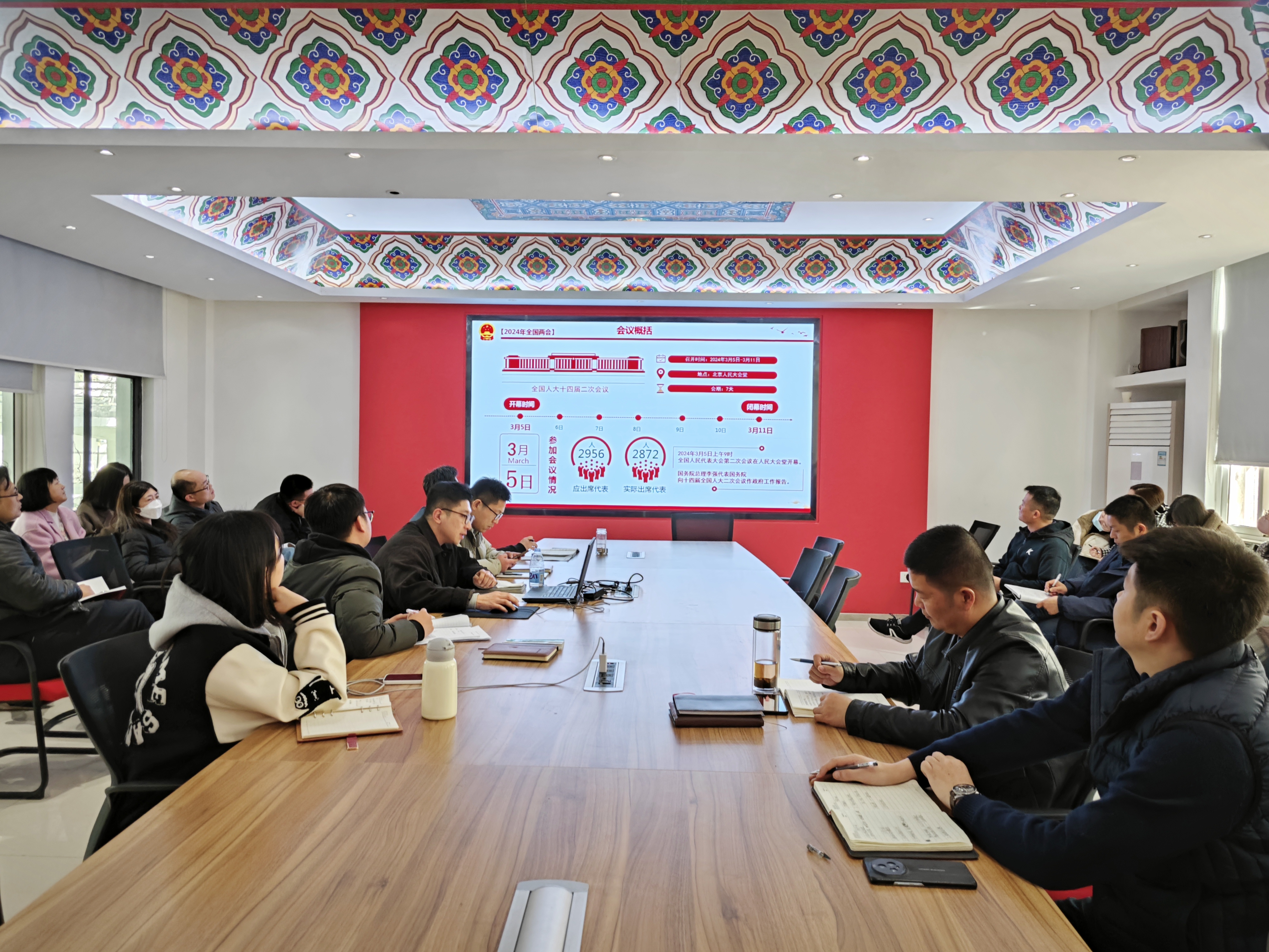 3月19日下午,太阳成集团tyc522cc组织教职工政治学习第二专题——学习贯彻习近平总书记重要讲话和全国两会精神。党总支副书记石峰主讲,公司全体教职工参加学习。