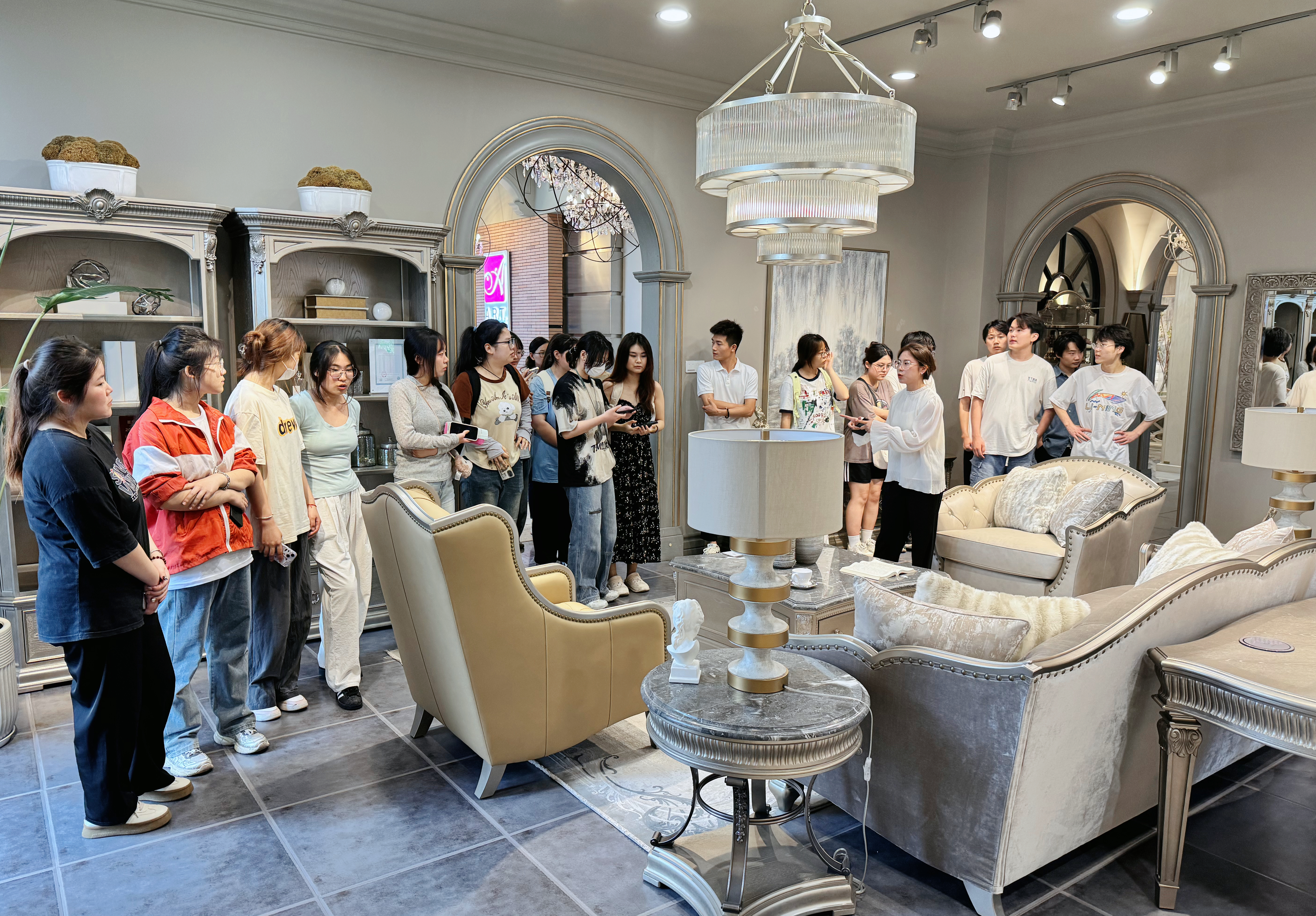 实践活动期间分别参观了美克ART、美度国际家居,公司热情接待了师生一行。杨经理和王经理针对家具的材料、工艺、市场、文化和消费场景等设计要素向同学们进行了认真细致的讲解。参观结束后,企业人员与员工进行了互动交流,介绍了企业的文化、发展前景和人才培养模式,并对员工的提问进行了解答。