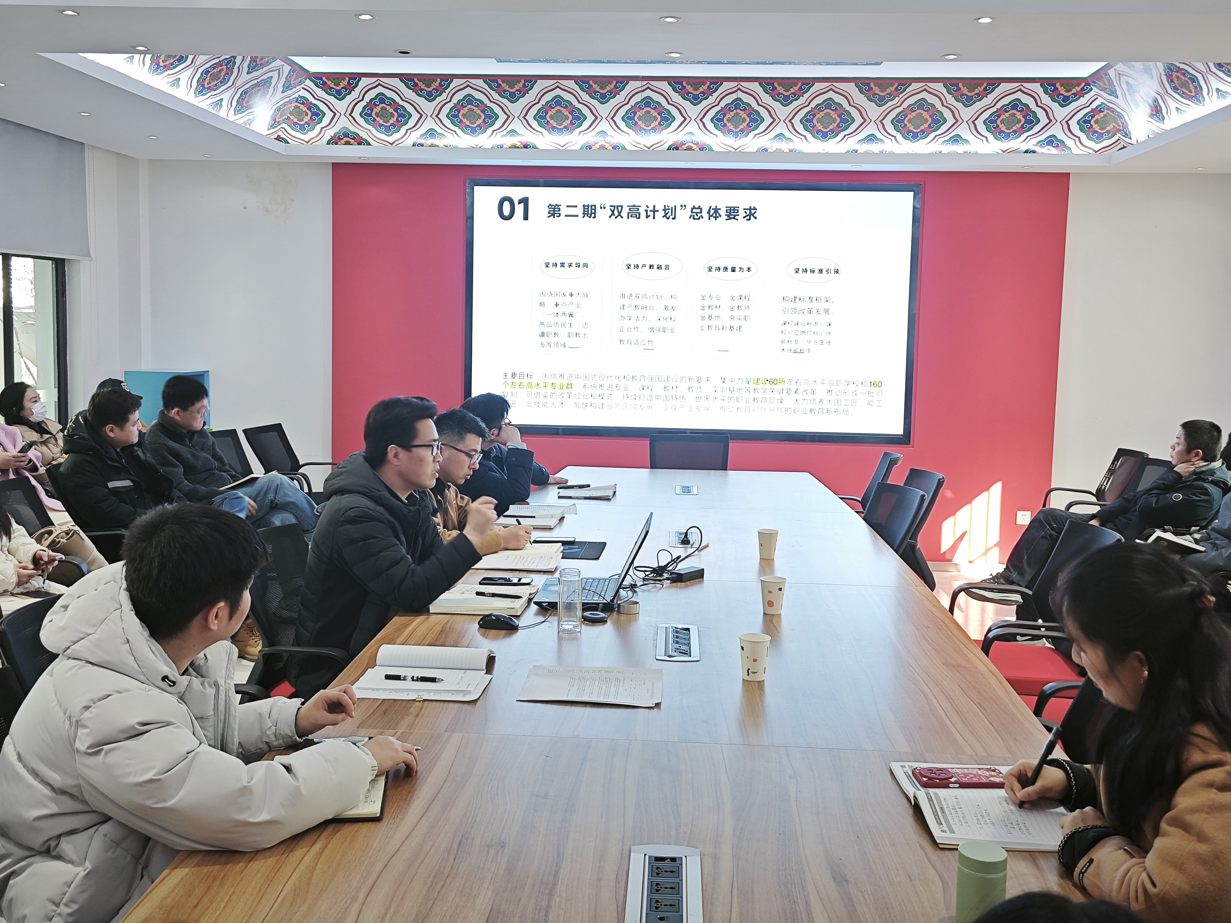 2月18日下午,太阳成集团tyc522cc组织专题学习《教育部财政部关于实施中国特色高水平高职公司和专业建设计划(2025—2029年)的通知》相关内容,公司党总支书记娄志刚主讲,公司全体教职工参加会议。