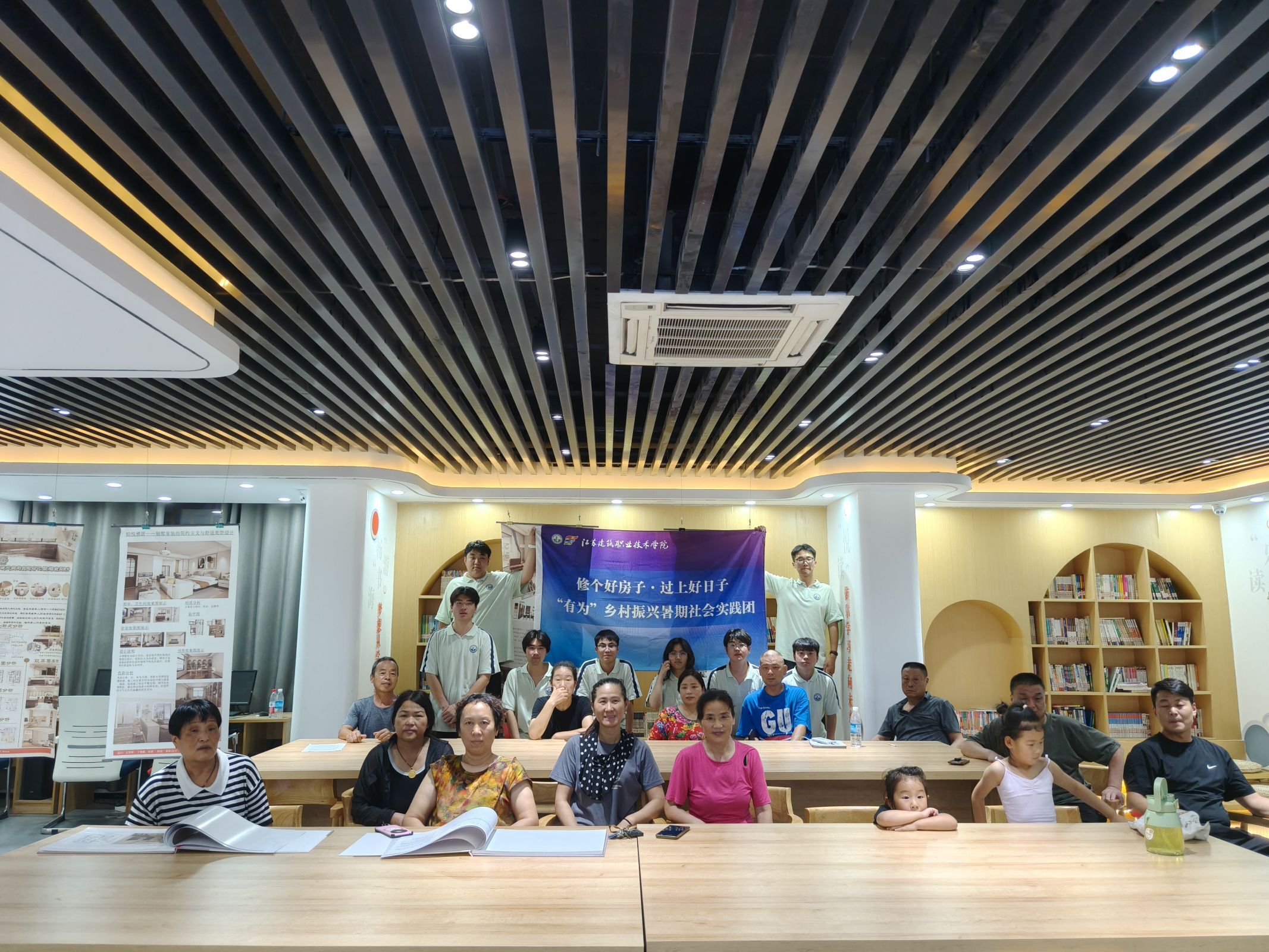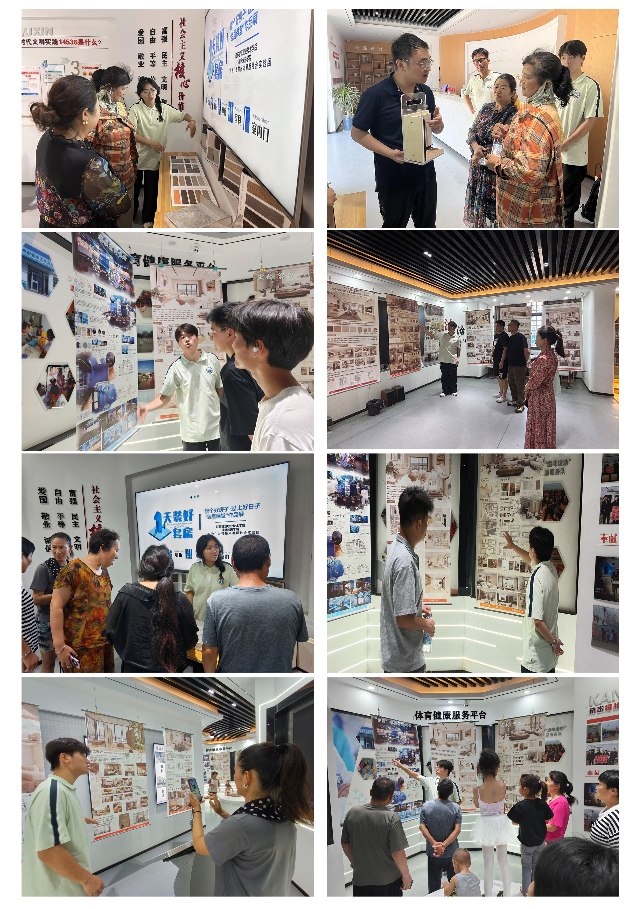 实阶段有为乡村振兴暑期社会实践团依托柳新镇新时代文明实践所开展“1天装好一套房”美居课堂作品展通过图文展板、户型模型、案例对比图等形式,让村民直观了解“好房子” 的标准与优势。同时,针对柳新镇乡村住房设计需求,开展 数字样板间体验,通过三维建模,提供360°全景漫游等方式直观呈现不同设计方案的落地效果,完整展示空间布局、材质效果细节等,解决村民想象难、决策难问题,村民所见即所得
