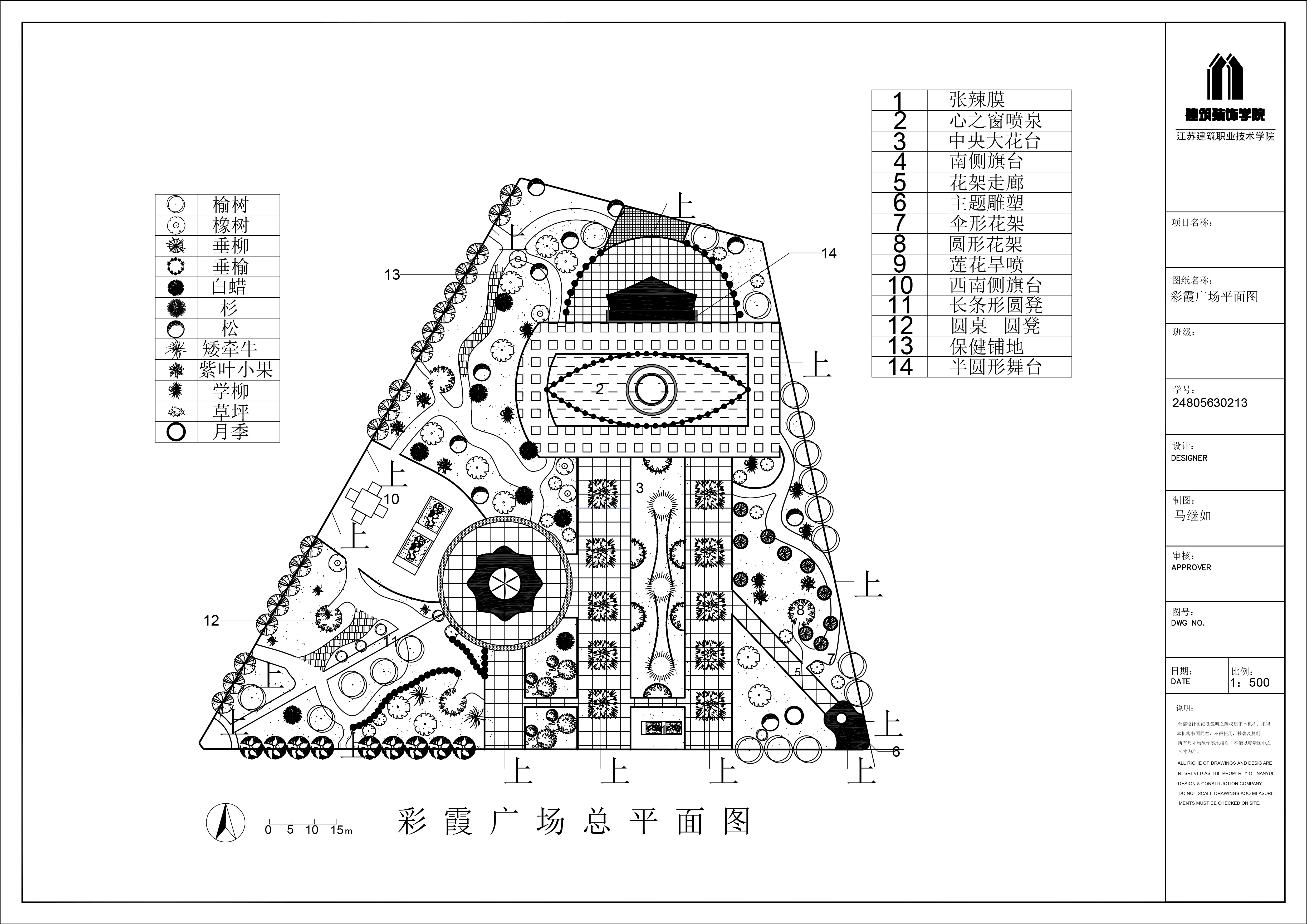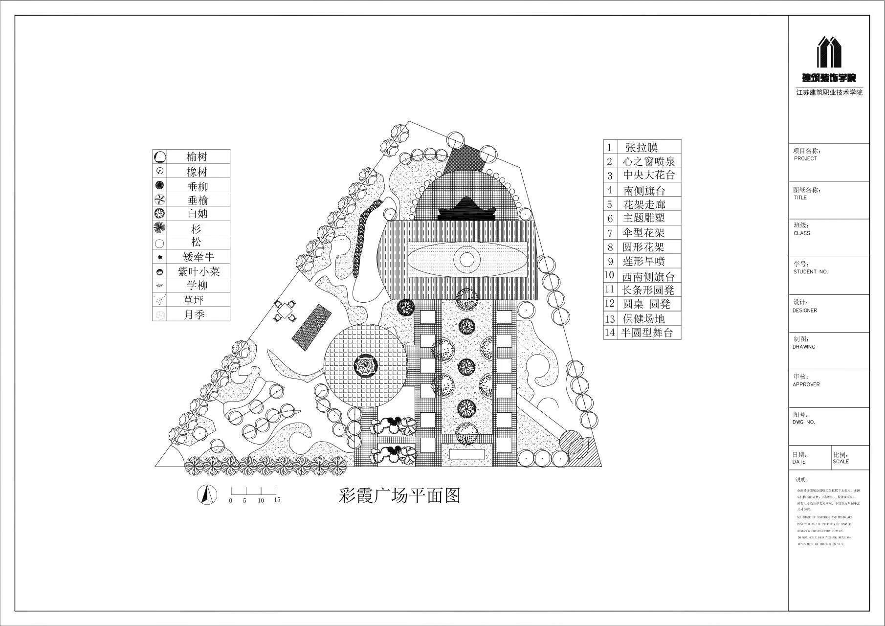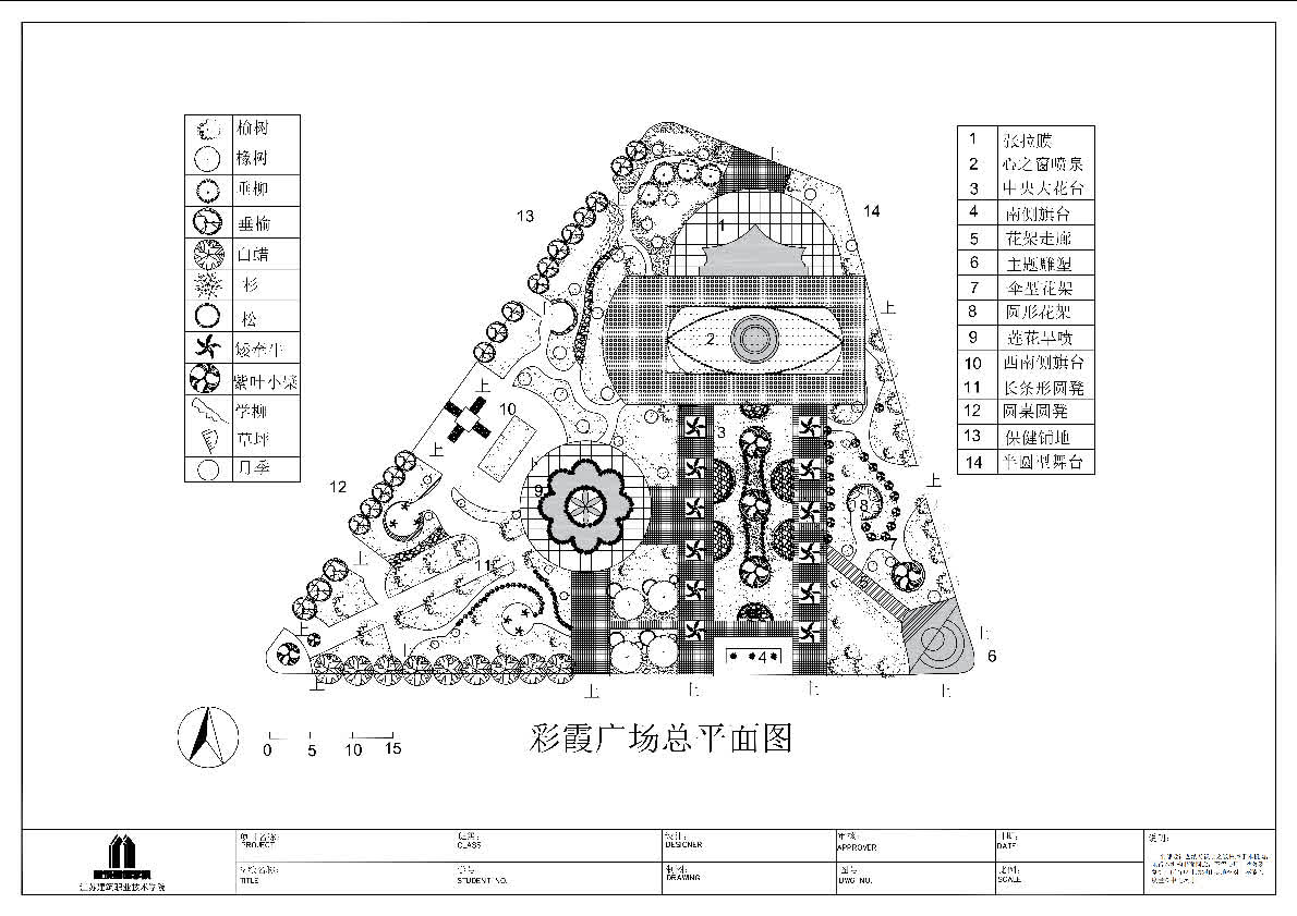 结合环艺专业及该课程的培养目标,我作为授课教师带领员工进行了相应的实训。在这个过程中,员工掌握了基本的CAD应用技术,做到了流畅的应用。而且,作为大一的新生,在没有太多设计基础的前提下,他们愿意挑战有一定难度的图纸。比如,实训项目之“河道驳岸剖面详图”,和“彩霞广场平面”,不仅涉及大量的CAD命令与技巧,还涉及到对技巧的举一反三;同时涉及到对复杂图纸的理解,与绘制流程步骤的理解等。