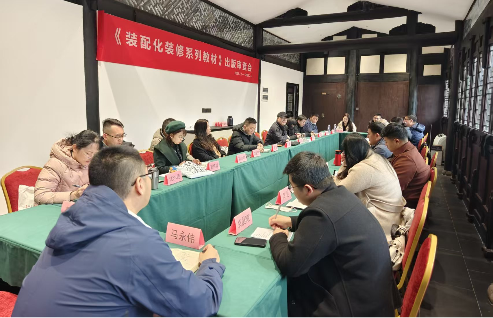 本次会议紧扣装配化装修技术专业人才培养需求,围绕教材体系建设展开深入研讨,充分体现了“产教融合、专业共建、教材共编、资源共享、人才共育”的现代职业教育理念。会议首日重点对第一批教材《装配化装修吊顶》、《装配化装修隔墙与墙面》、《装配化装修地面》、《装配化装修整体卫浴设计与施工》四本教材进行了系统性审阅,对《装配化装修厨房》、《装配化装修设备与管线》、《装配化装修收纳与家具》三本教材进行了推进性研讨。