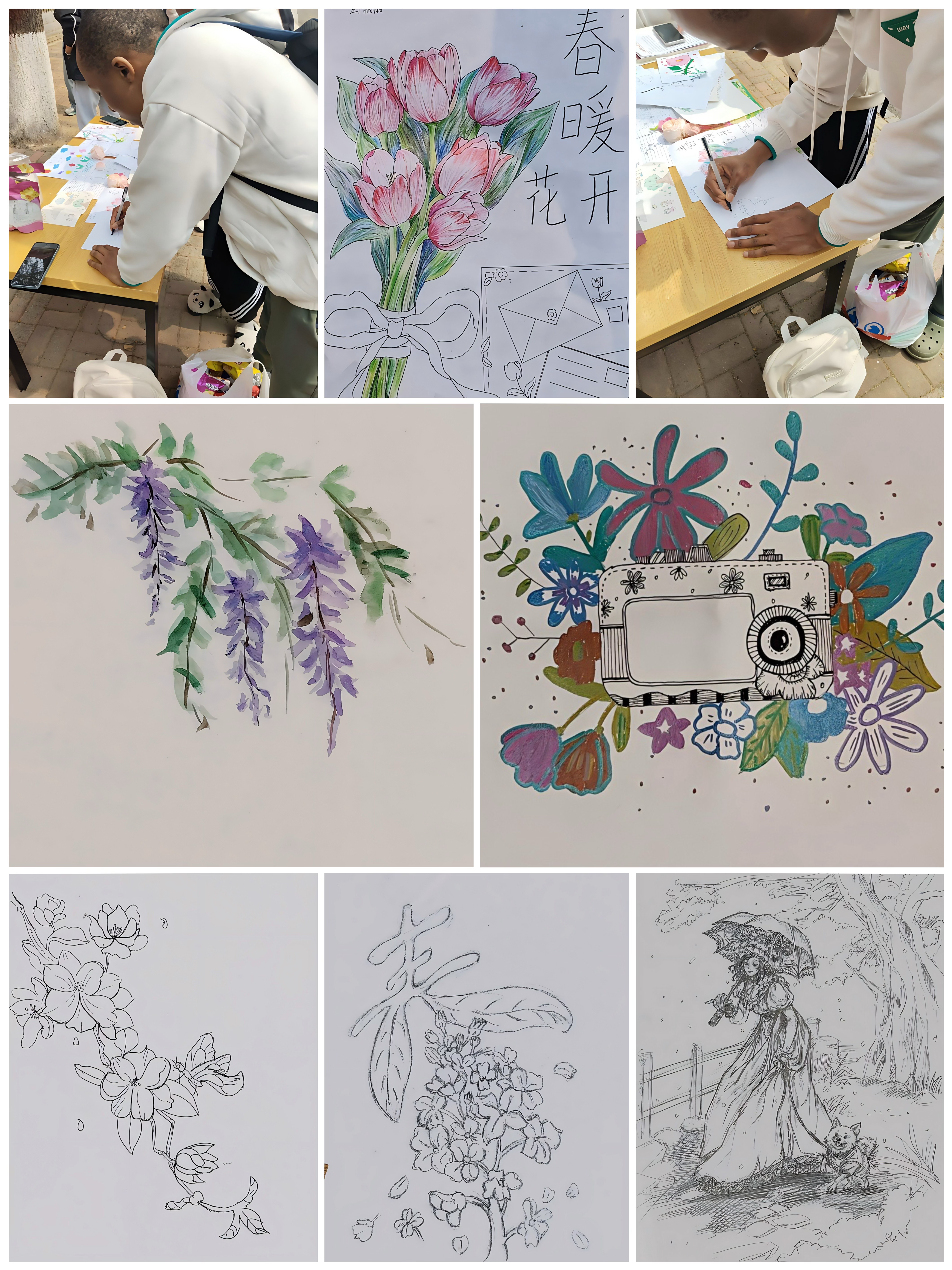 活动现场,同学们以笔为媒、以手作舟,将对春天的热爱与想象倾注于一幅幅作品之中,为校园增添了浓郁的艺术气息与春日活力。活动以“春日”为主题,鼓励员工自由创作。现场气氛热烈而有序,充分展现了学子良好的精神风貌与组织素养。从色彩斑斓的春日风景绘,到栩栩如生的春日主题手作,每一件作品都凝聚着同学们对春天的细腻观察与独特表达,尽显青春巧思。值得一提的是,活动还吸引了外国职工热情参与,现场互动融洽,成为春日校园一道温暖的风景线。